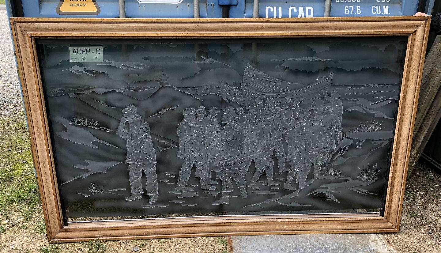 Kæmpe glas relief med Skagensmotiv i slebet glas.