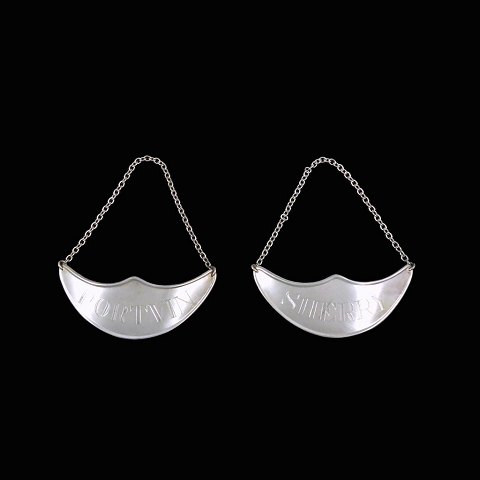 To flaskeskilte i Sølv - Sherry & Portvin.