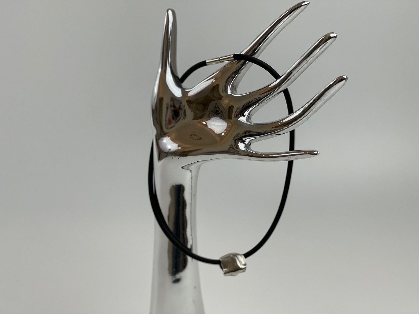 Kæde af naturgummi med Sølv vedhæng fra Toftegaard, designet af Traudel Toftegaard, ubrugt