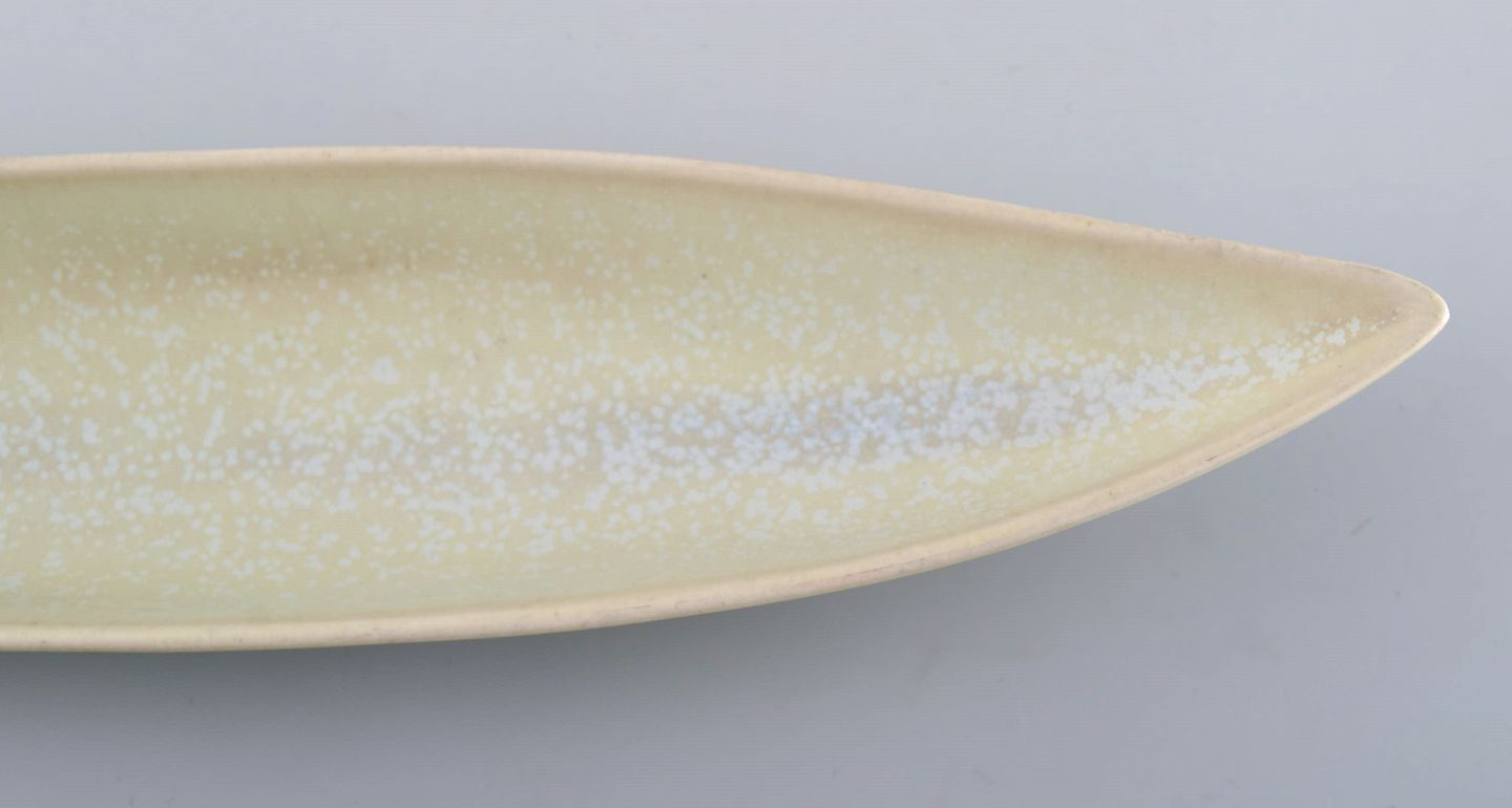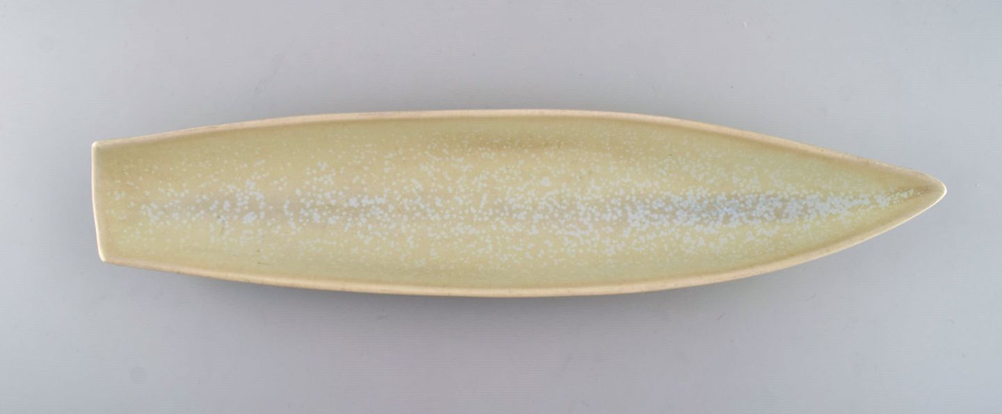 Stig Lindberg (1916-1982) for Gustavsberg. Sjældent Endiv fad i glaseret keramik. Smuk æggeskalsglasur. 1960'erne.