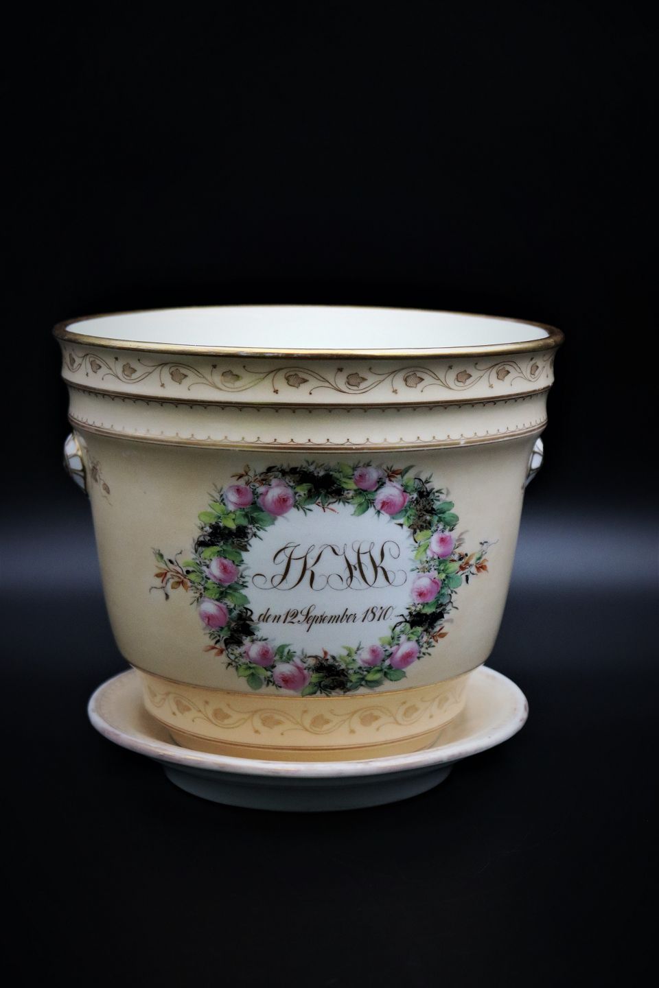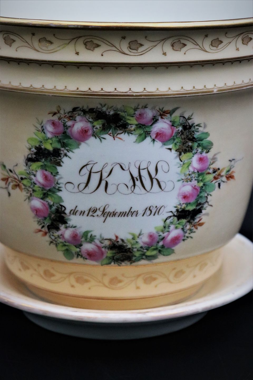 Urtepotten er bestillings arbejde ( gave ) med initialer og dateret 12. september 1870.
