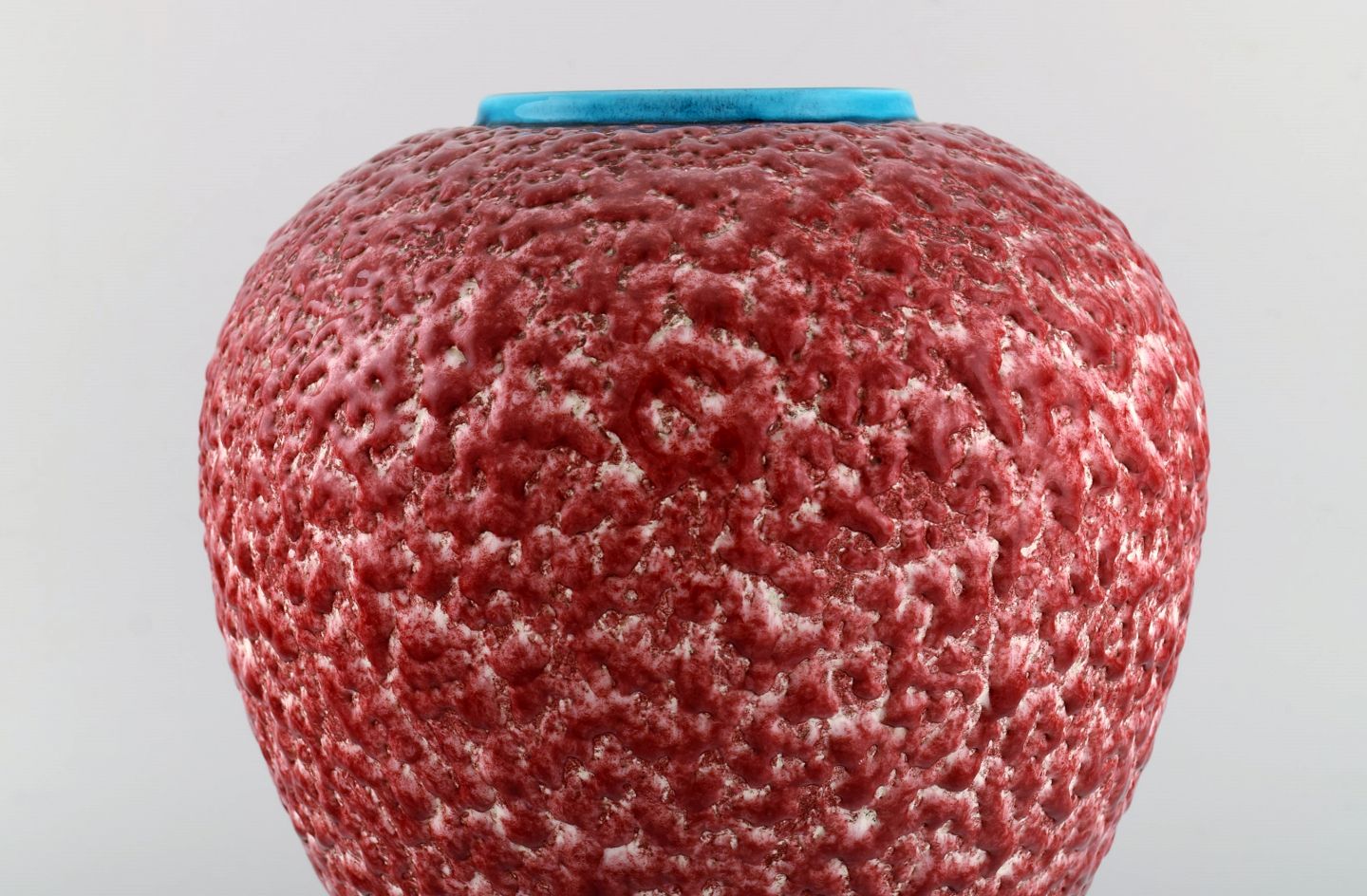 Paul Milet (1870-1930) for Sevres, Frankrig. Stor art deco vase i glaseret keramik. Fantastisk glasur i blå og røde nuancer. 1920'erne.