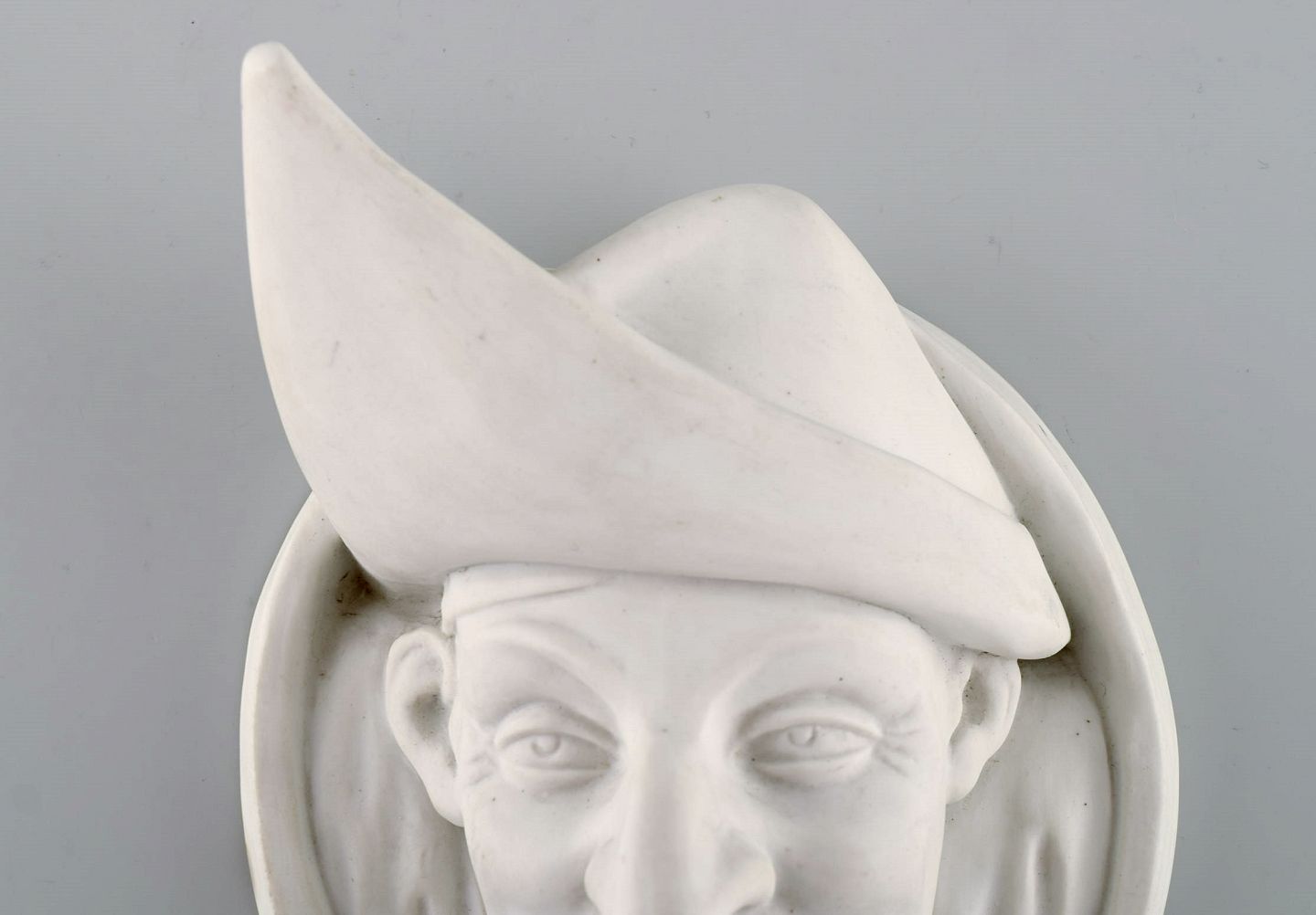 Christian Joachim (1870-1943) for Royal Copenhagen. Antique and rare wall relief in bisquit. Pierrot. Early 20th century.