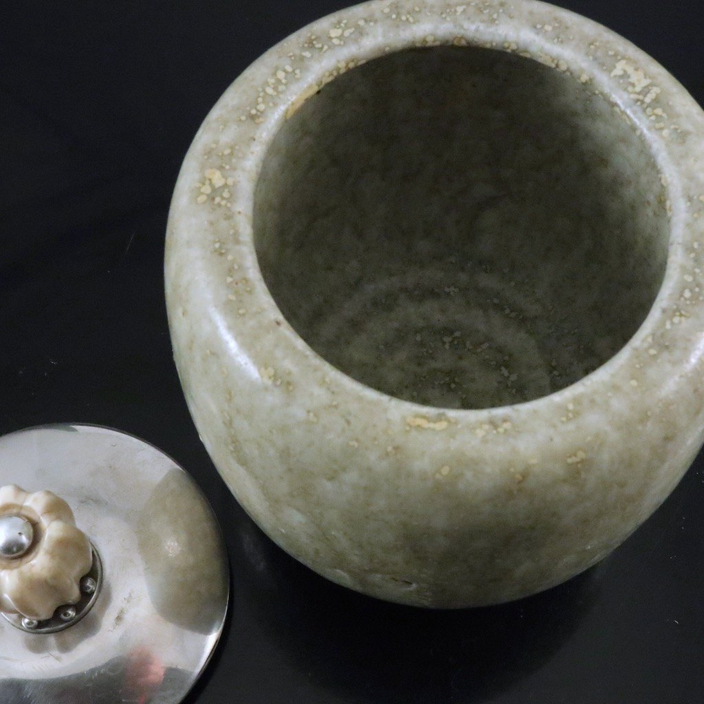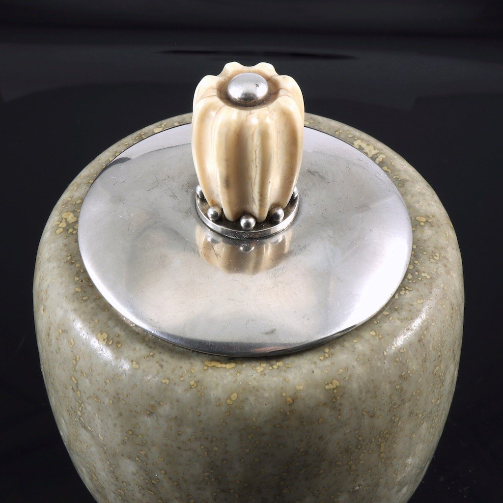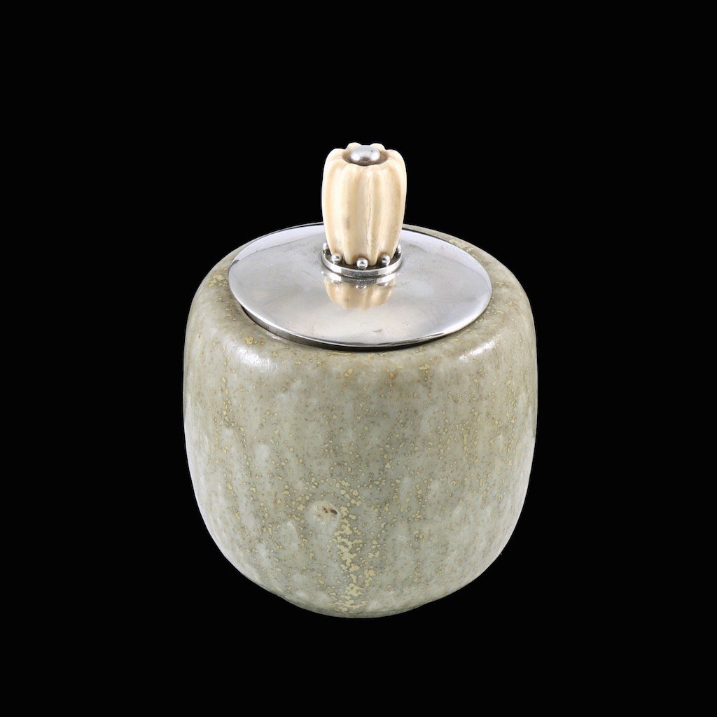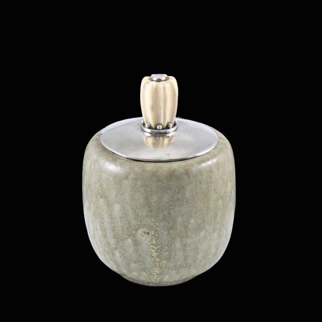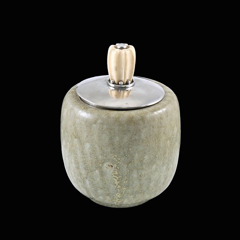 Arne Bang - Evald Nielsen. Krukke i stentøj med låg sterling i sølv.