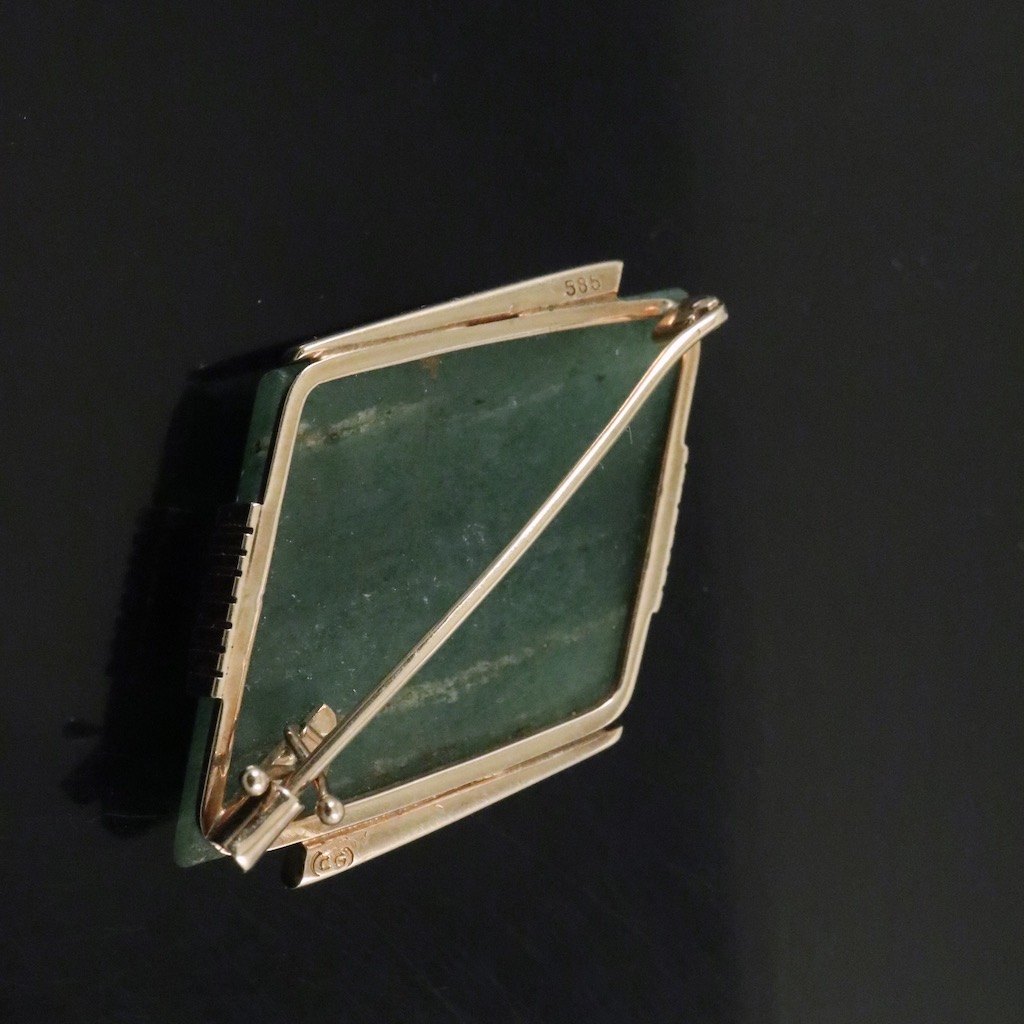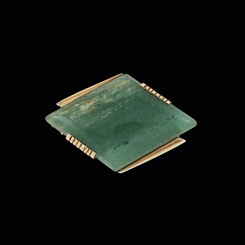 Camilla Gram. Broche i 14k guld med avanturinkvarts.