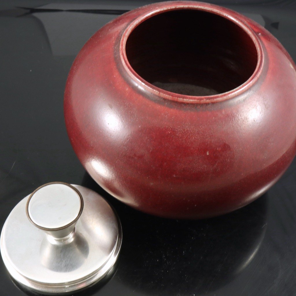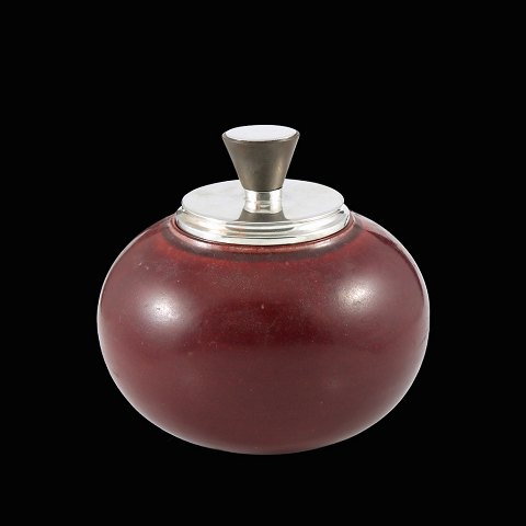 Royal Copenhagen - Hingelberg. Krukke i stentøj med låg i Sterling Sølv.