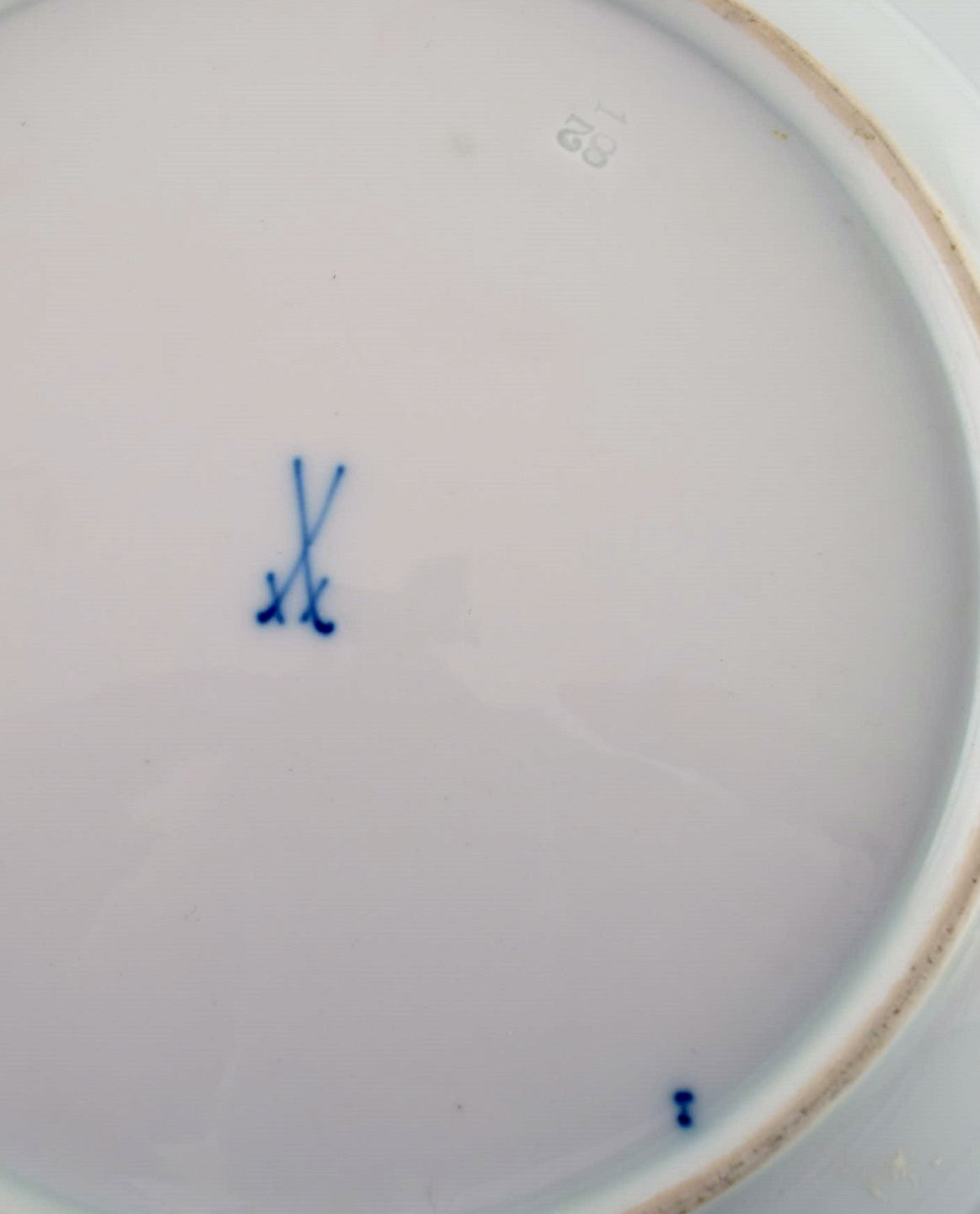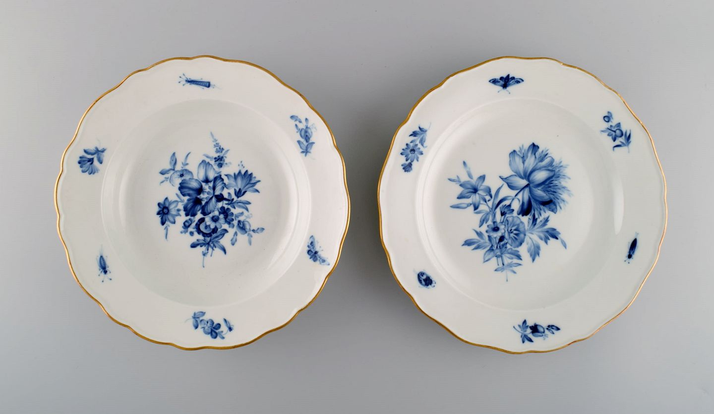 To antikke Meissen tallerkener i porcelæn med håndmalede blomster og guldkant. Ca. 1900.