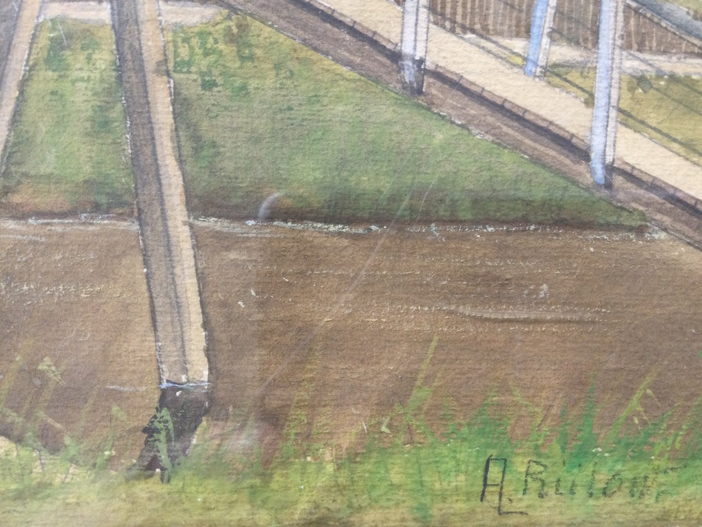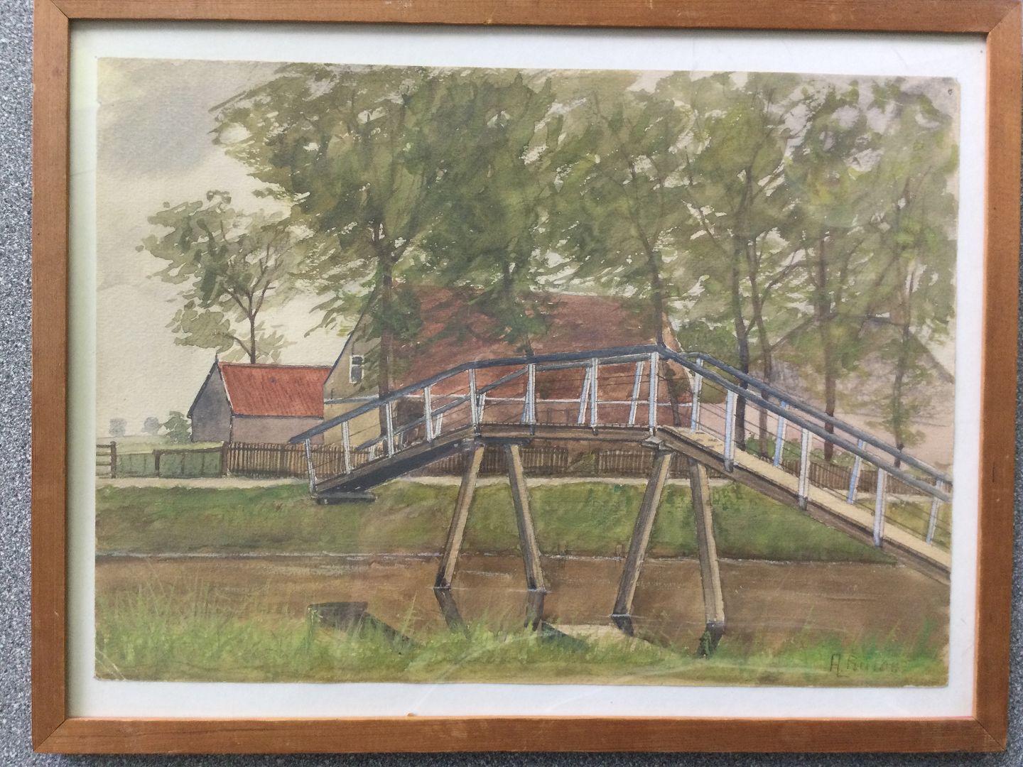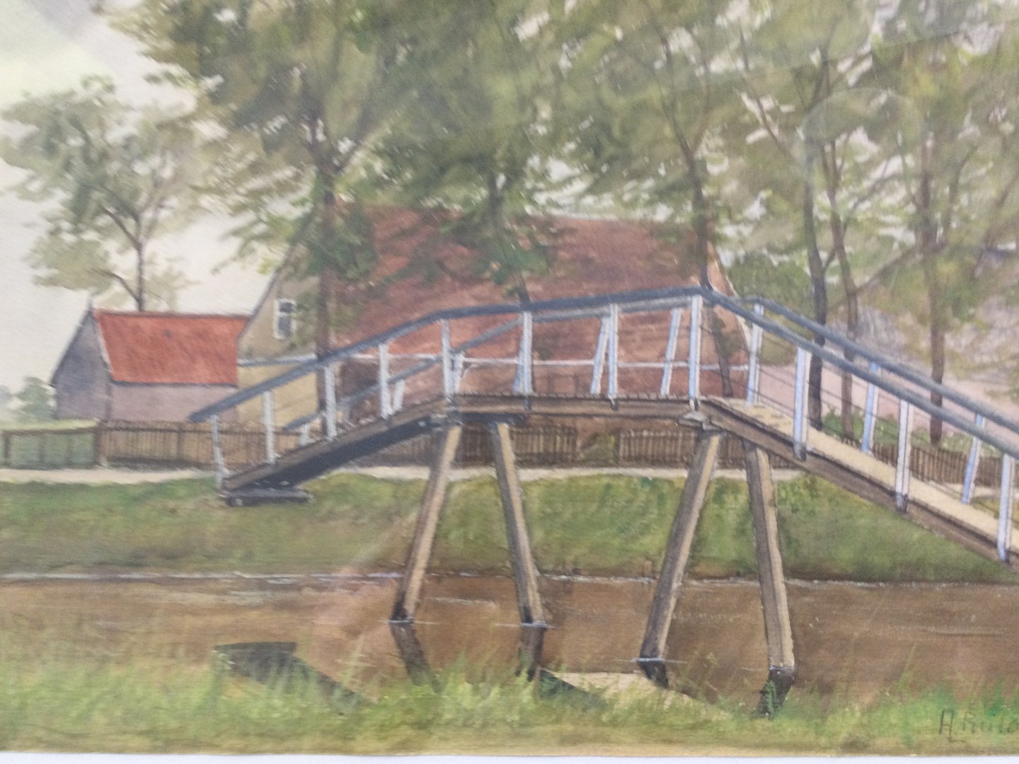 Akvarel af A.L. Bülow - Bro over å.
