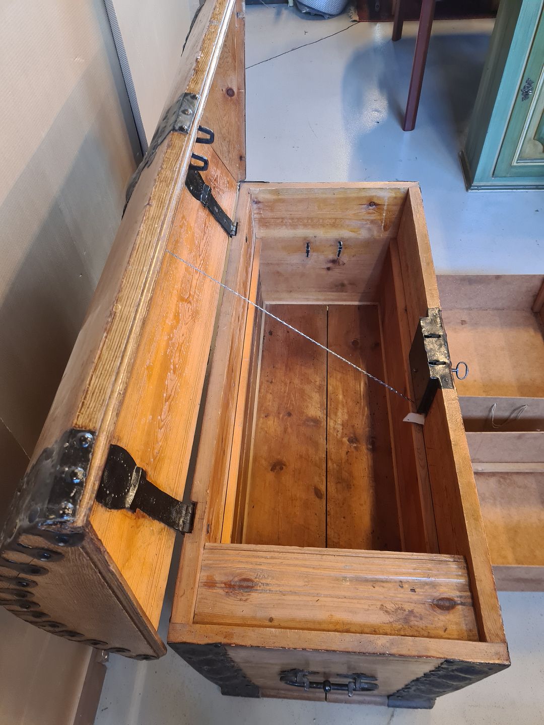 Kiste i massivt egetræ fra 1860erne.