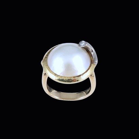 Dansk Design. Ring i 14k guld med perle og diamant.