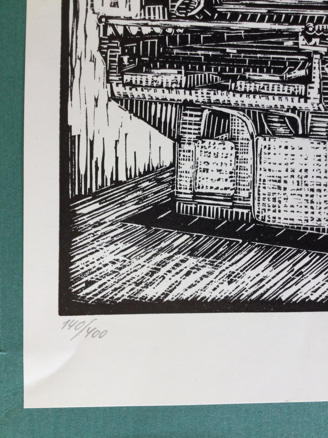 Linoleumstryk på papir monteret på pap.