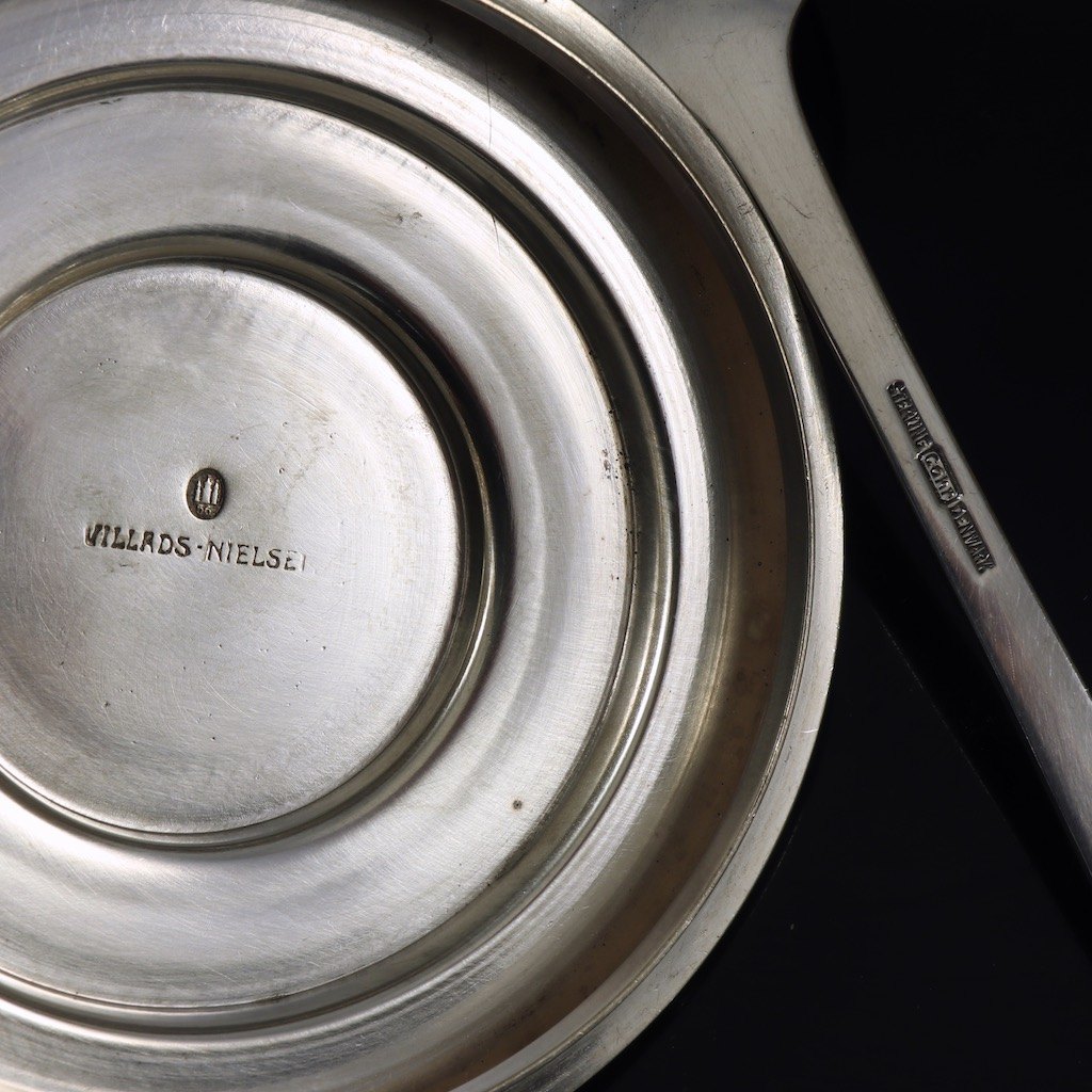 Låg samt ske i sølv tegnet og udført hos Villads-Nielsen.