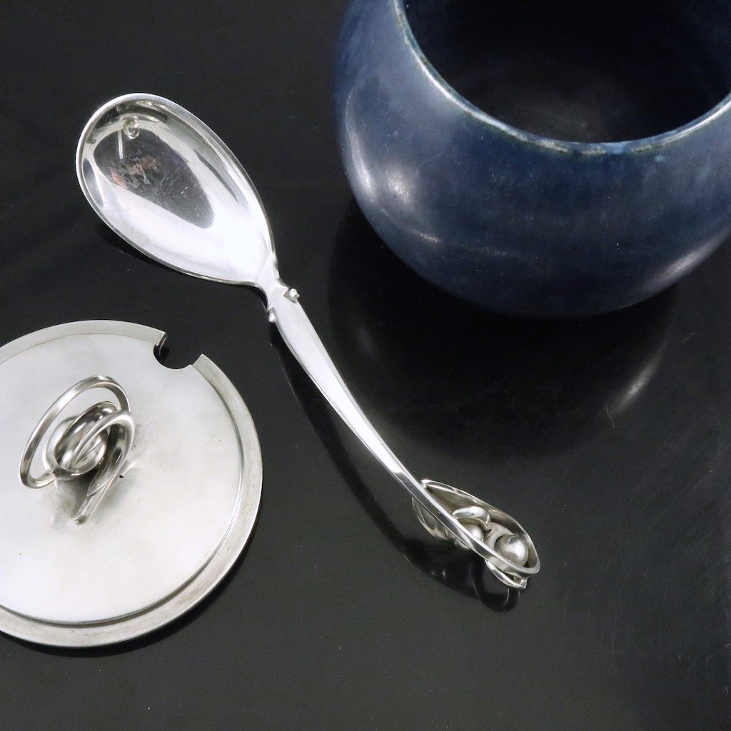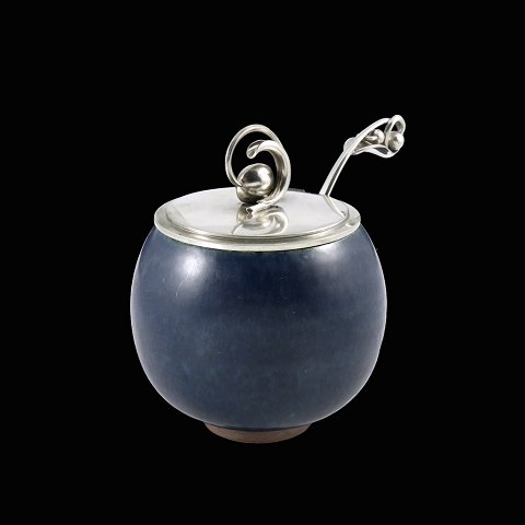 Saxbo - Hugo Grün. Stoneware Jar with Silver Lid and Spoon.