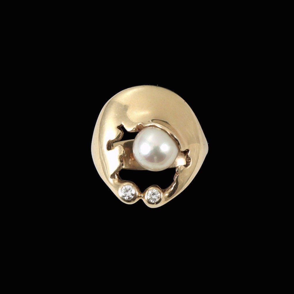 Johan Torp. Ring i 14k guld med perler og diamanter. 0.06ct