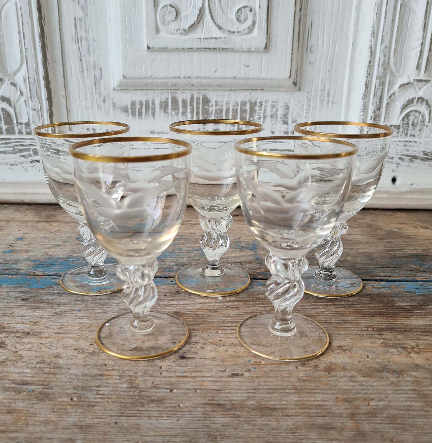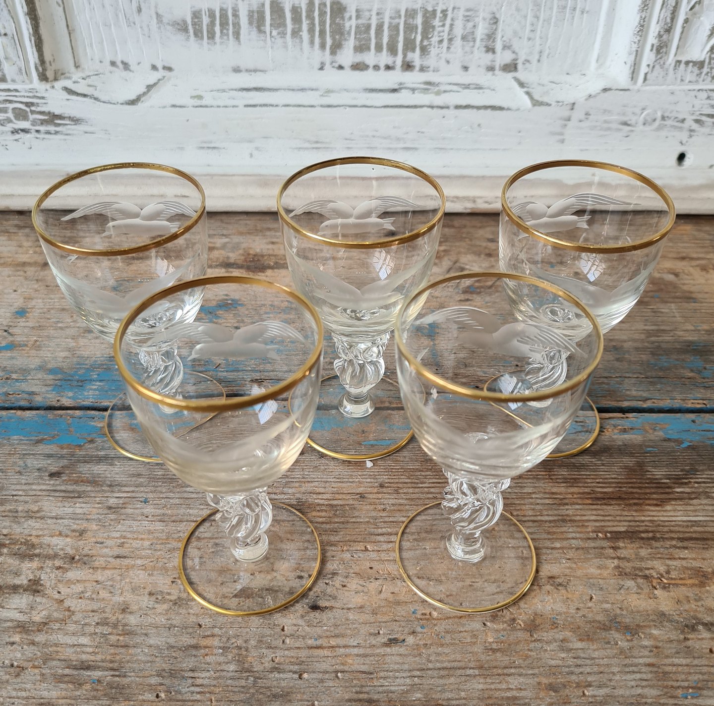 Lyngby Måge portvinsglas med guldkant 9,5 cm.
