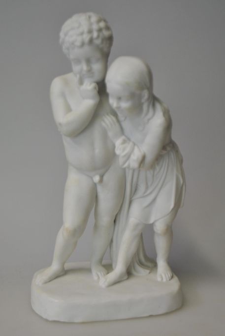 Bing & Grondahl bisquit figure of two children, 19th century Copenhagen, Denmark.