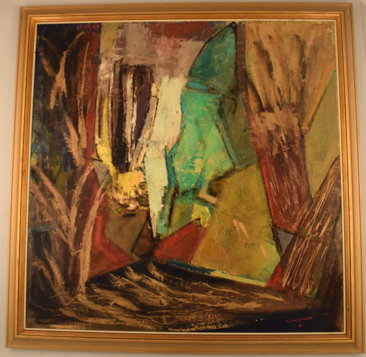 Pär Ivar Jogstad (1906-1980), Sverige. Olie på lærred. Abstrakt komposition. Dateret 1969.