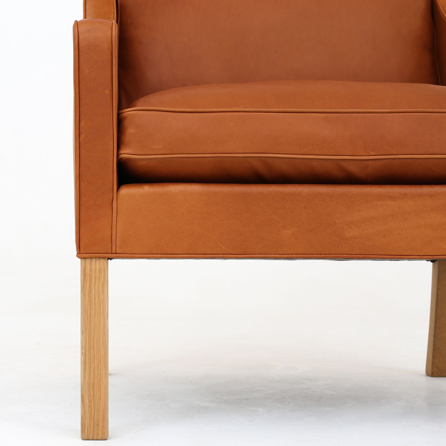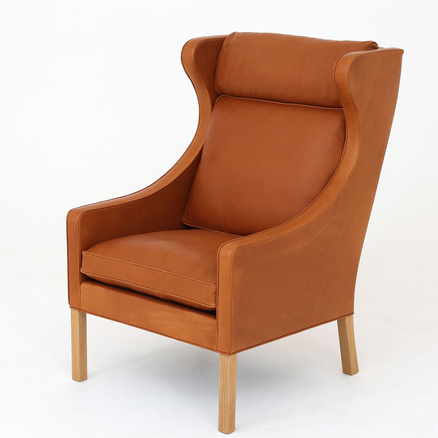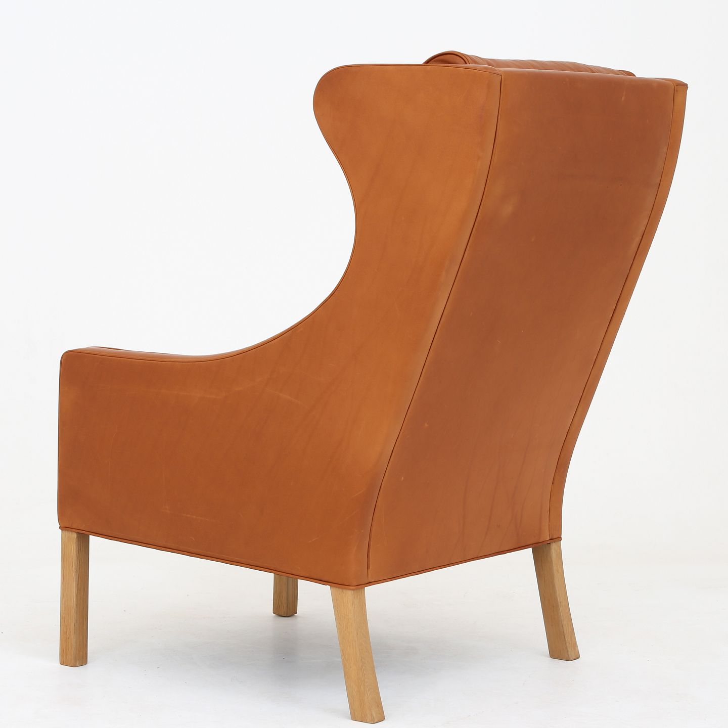 BM 2204 - Nybetrukket Øreklapstol i Klassik Cognac-læder med ben i eg.