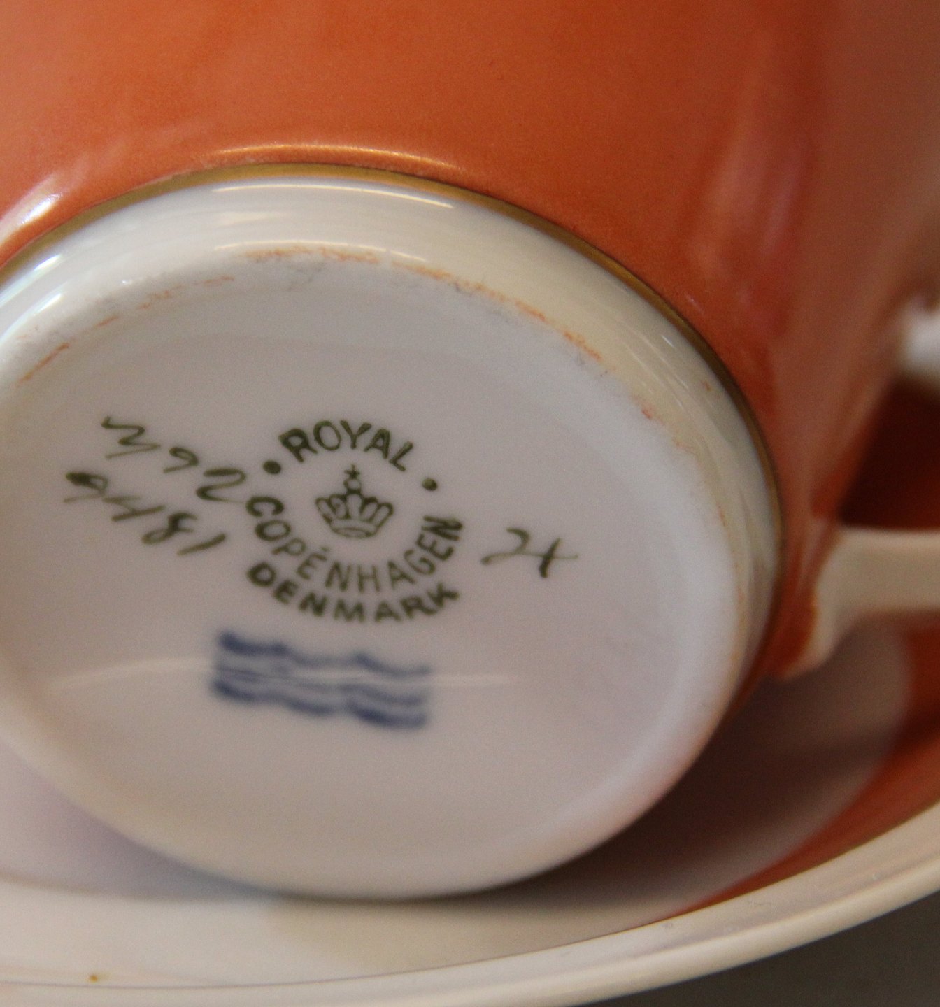 792-9481 Kaffekop 7 x 7.5 cm, underkop 13.3 cm Kgl. fra Royal Copenhagen Jægersborg Orange pastelfarve med guld