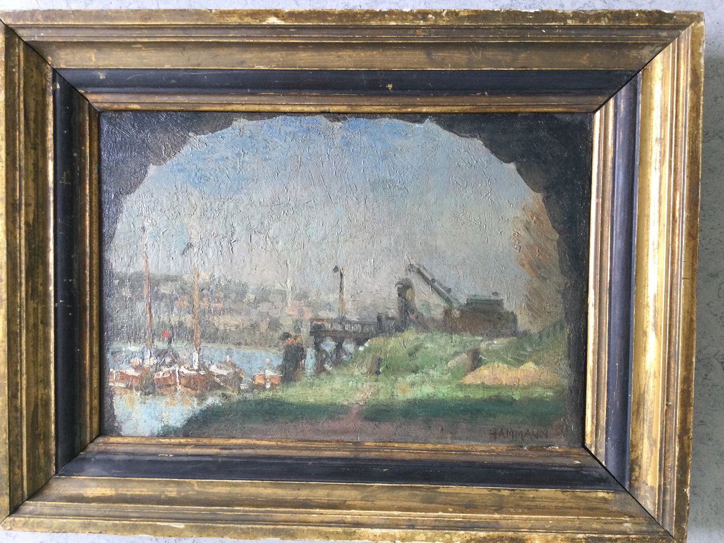 Maleri af Marius Hammann - Havneparti.