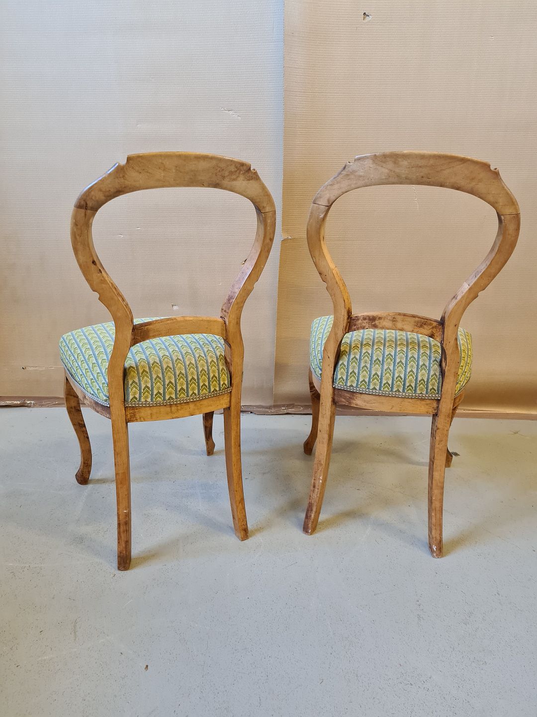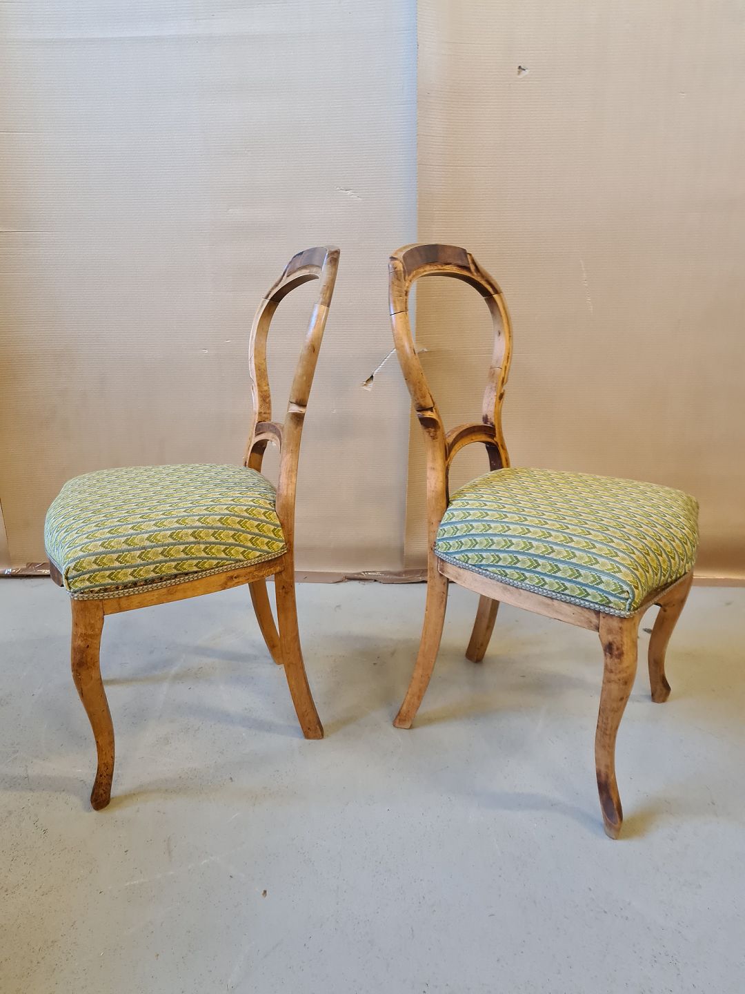 2 Salonstole i mahogni og bøgetræ fra 1900erne.