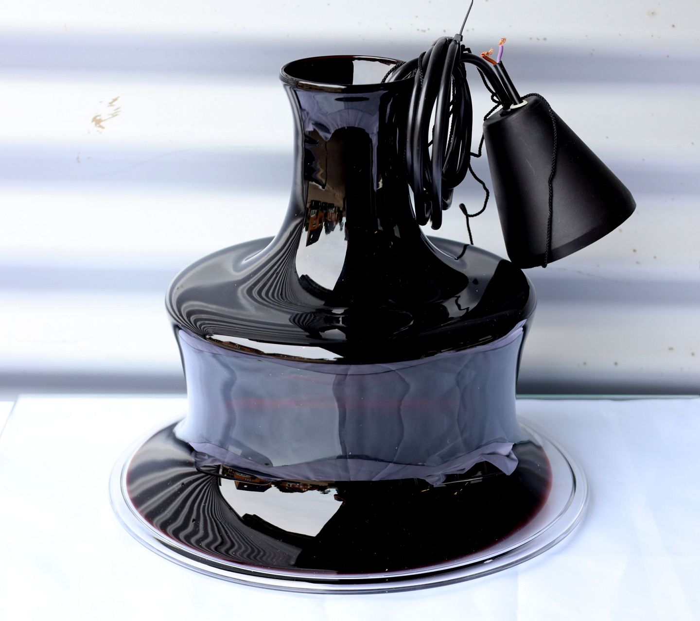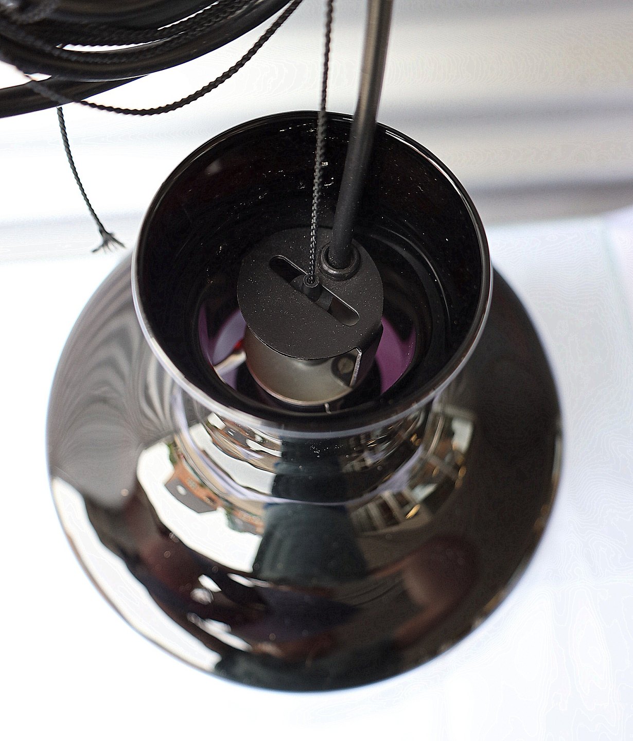 Holmegaard Glasværk. Sonate Pendel, pendlen kommer med hejs.. Glasskærmen er udført i farven aubergine, med klart overfang.