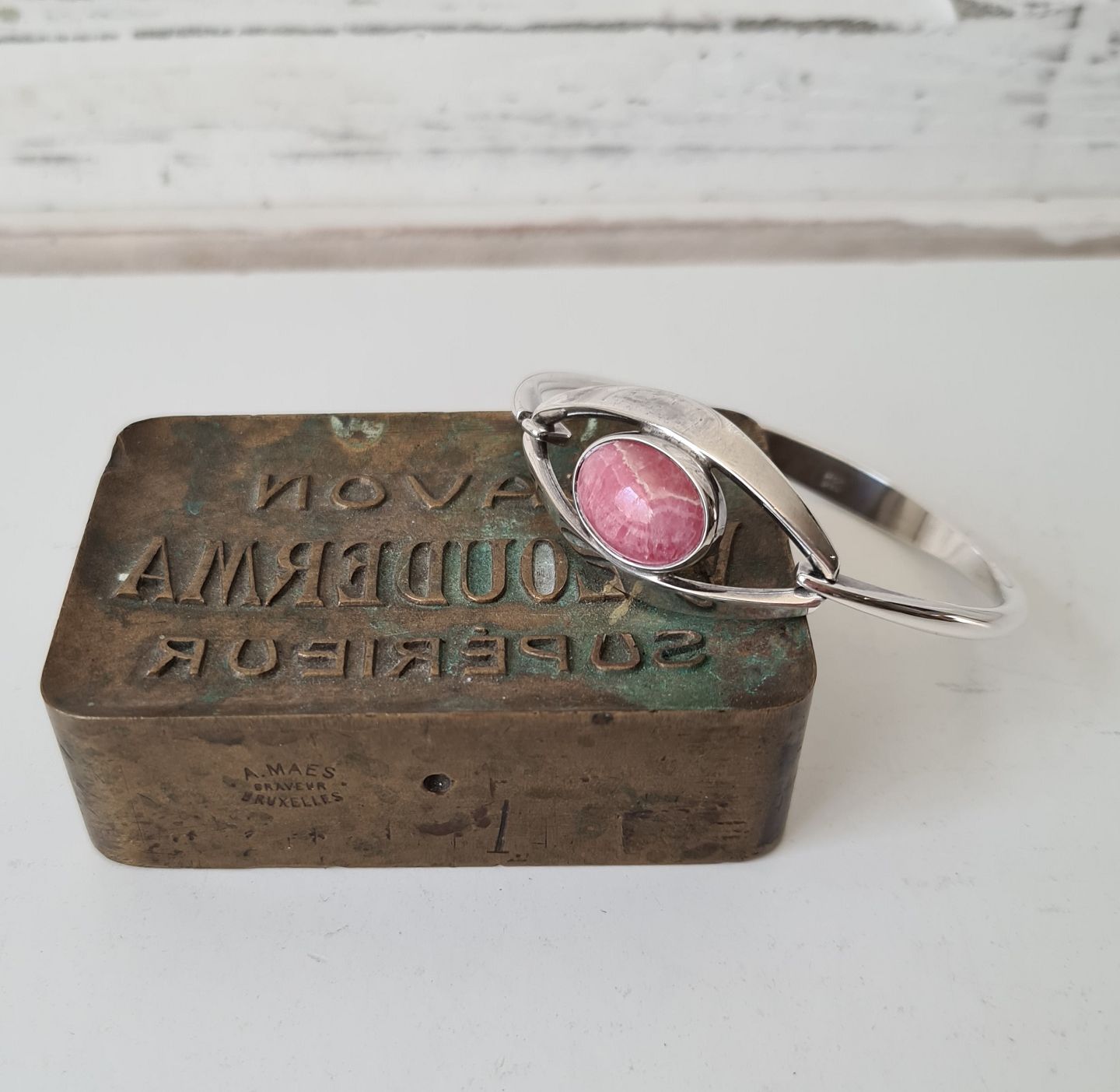 N.E.From vintage armring i sølv med rosa kvarts