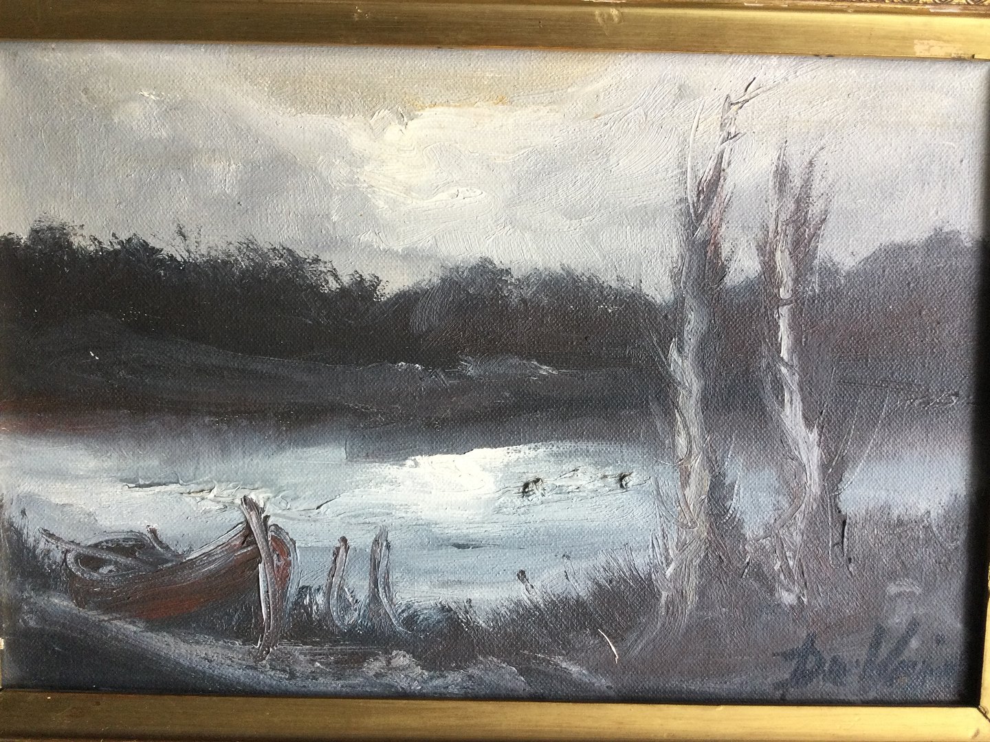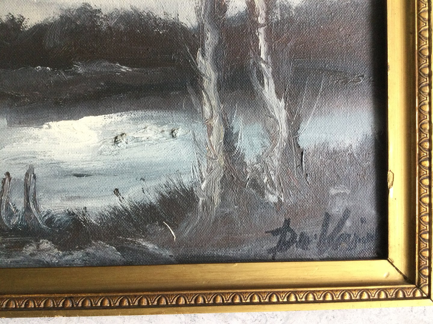 Maleri af Brith de Vries - Aftenstemning ved Madum Sø, Rold Skov..