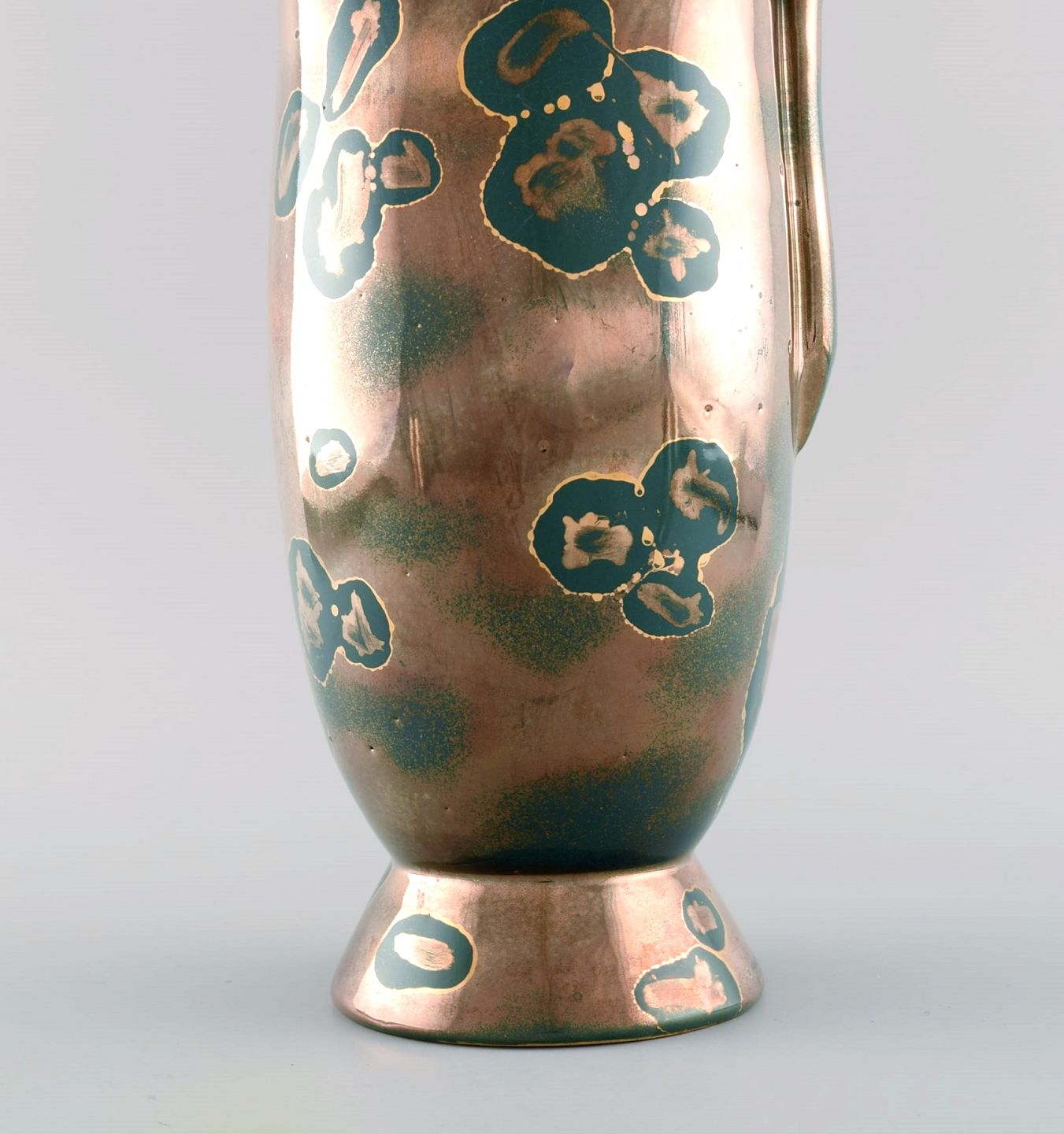 Arts Ceram Grand Feu, Frankrig. Vase / kande i glaseret stentøj. Smuk glasur i guld og grønne nuancer. 1920'erne.