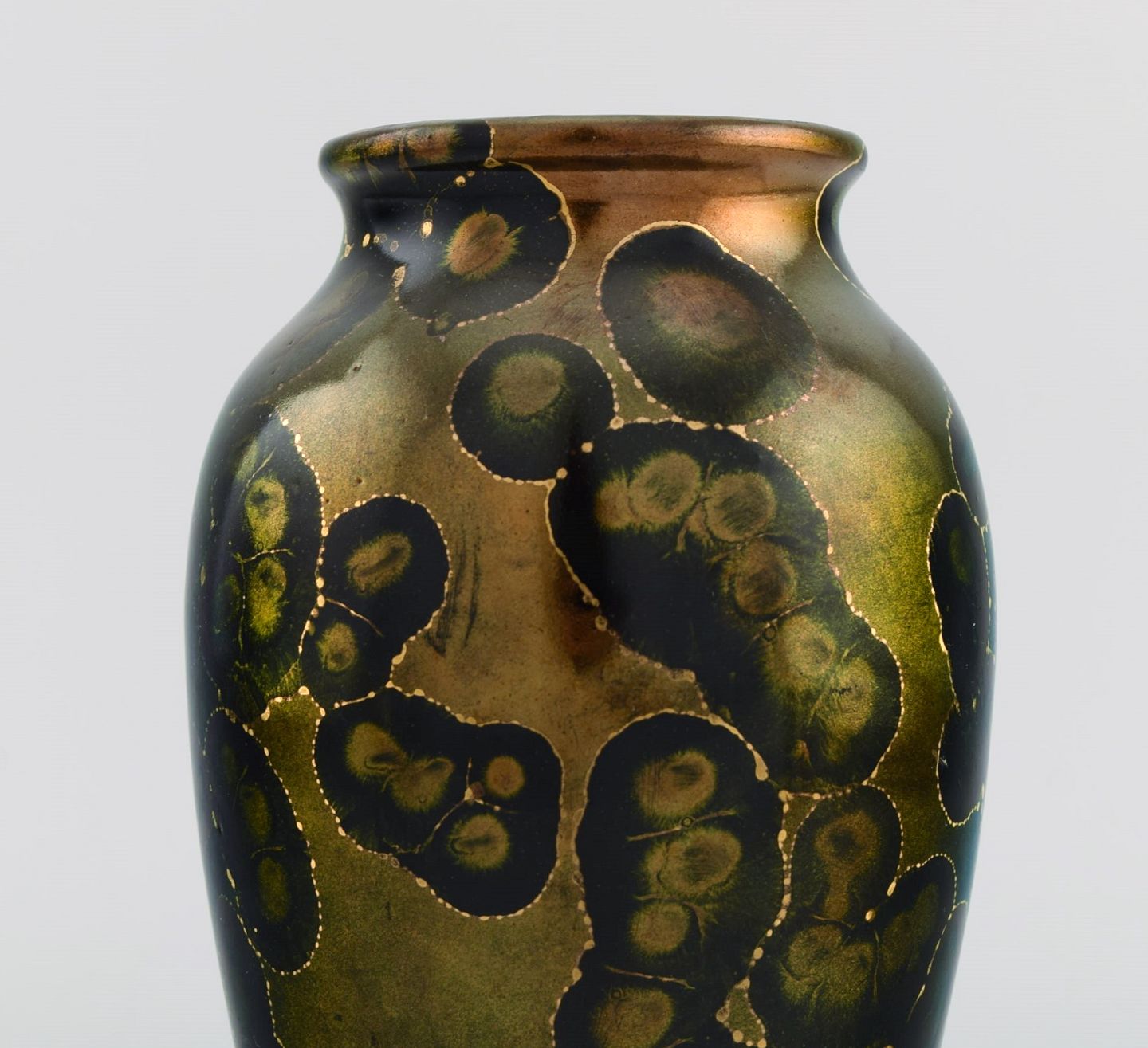 Lucien Brisdoux (1878-1963), Frankrig. Vase i glaseret stentøj. Smuk glasur i guld og grønne nuancer. 1930/40'erne.
