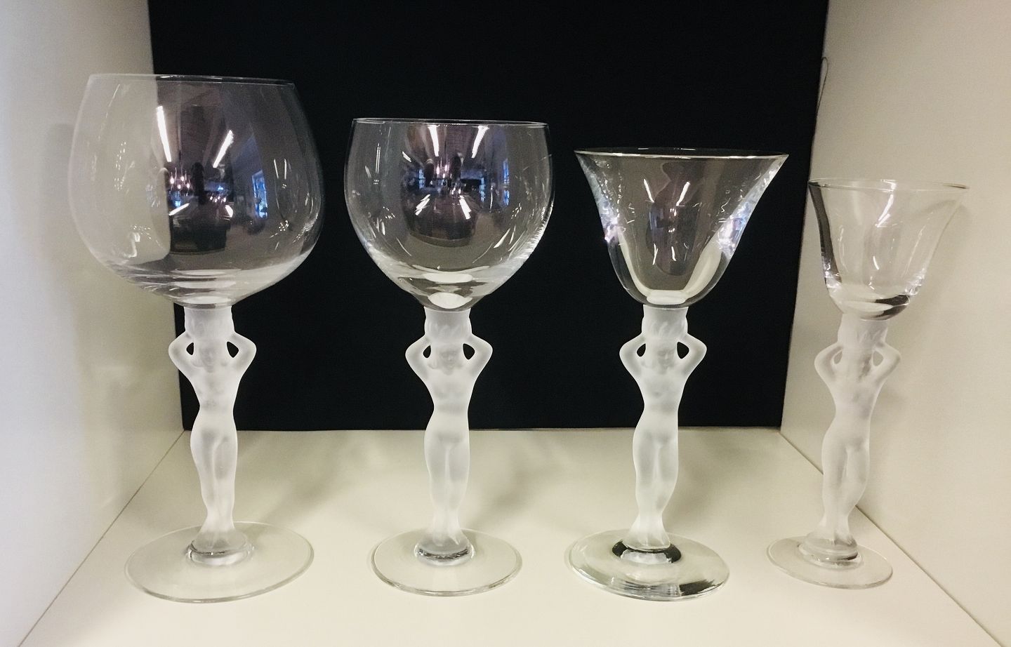 Vinserie i Fransk krystal med nøgen kvinde som stilk.