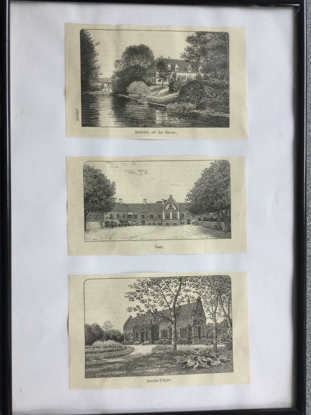 Xylografier af J.T. Hansen - Herregårdene Waar Hovedgård, Birkelse og Sønder Elkær i Nordjylland 1899 og 1900.