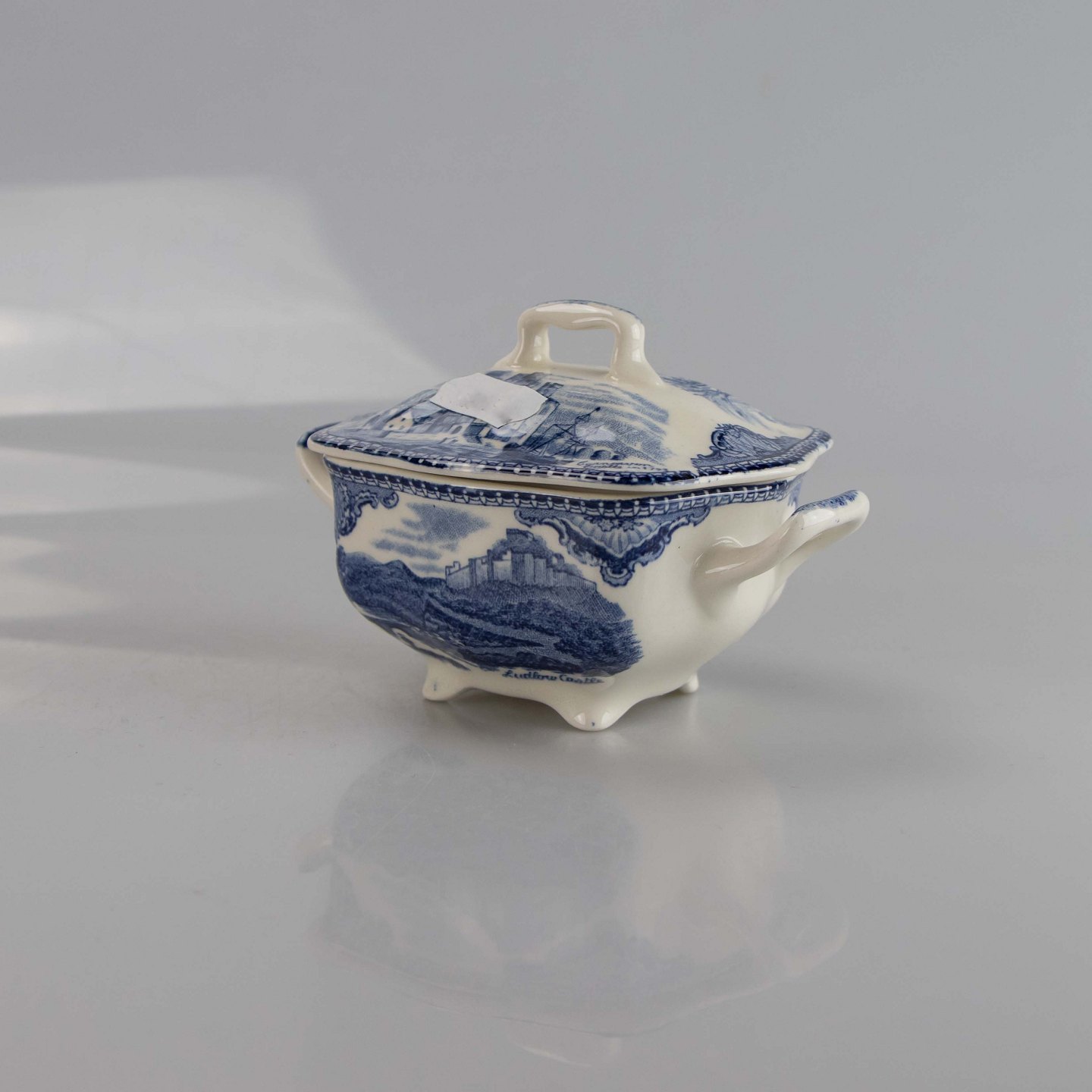 Sukkerskål i engelsk fajance fra stellet Old Britain Castles blue