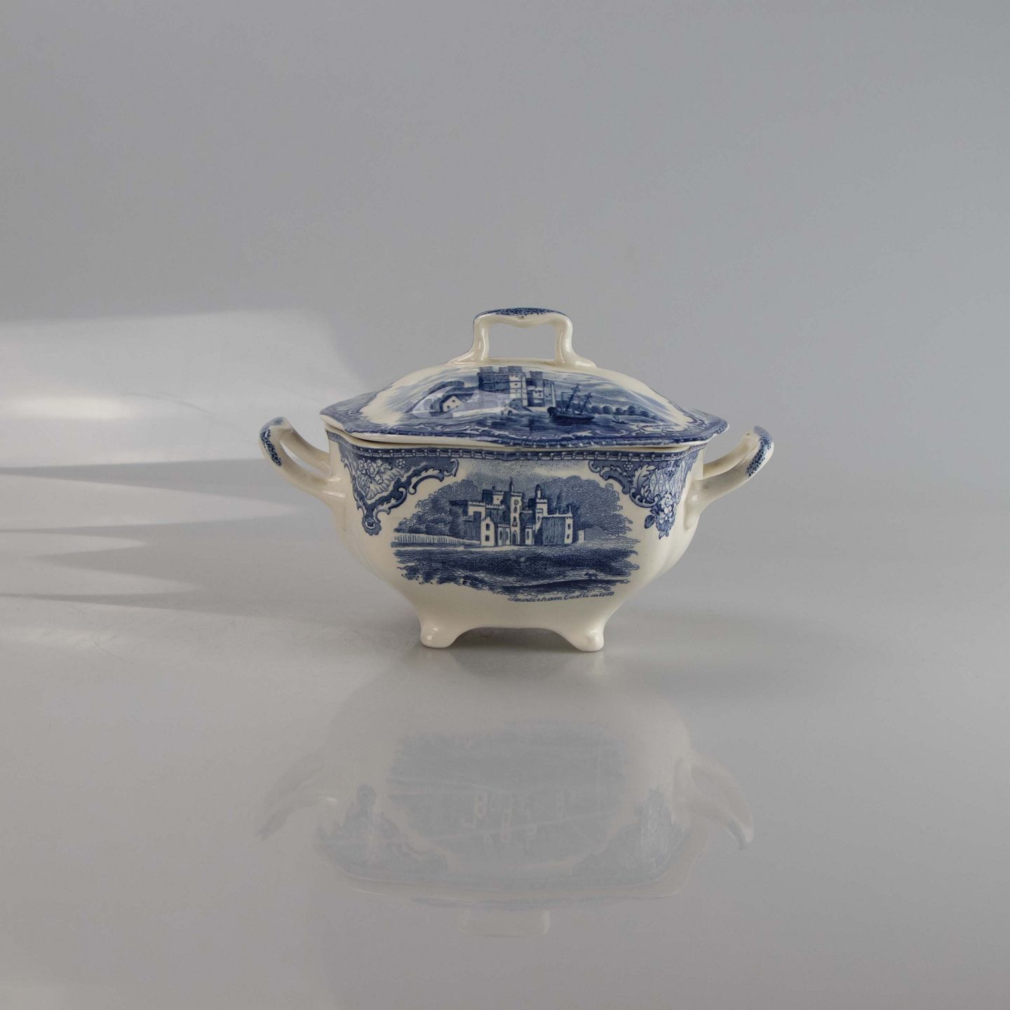 Stor sukkerskål i engelsk fajance fra stellet Old Britain Castles blue