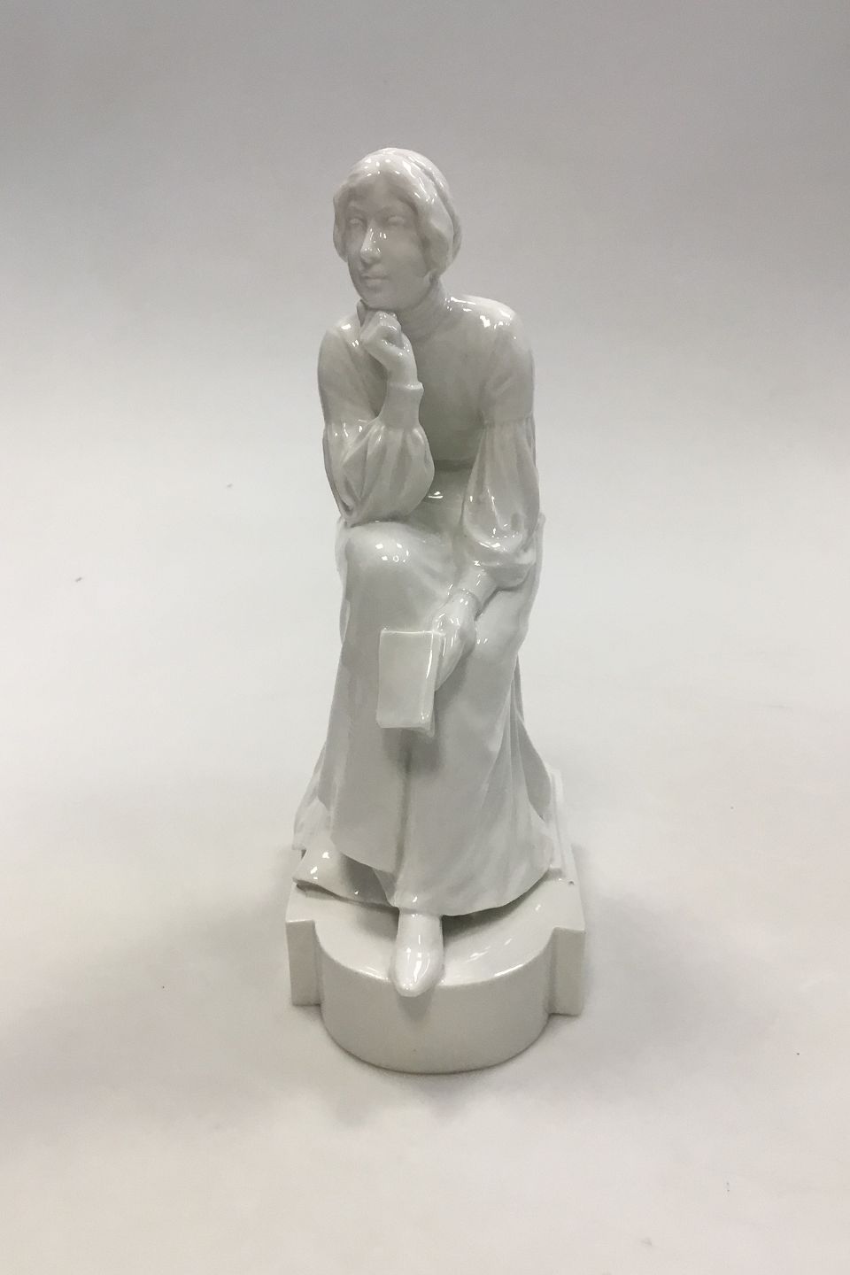 Royal Copenhagen Blanc de Chine Figur, "Eftertænksom kvinde der læser" Designet af Christian Thomsen No 435