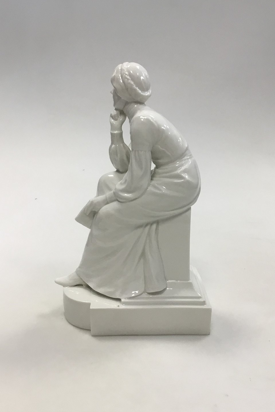 Royal Copenhagen Blanc de Chine Figur, "Eftertænksom kvinde der læser" Designet af Christian Thomsen No 435. Måler 22 cm(8 21/32 in.)