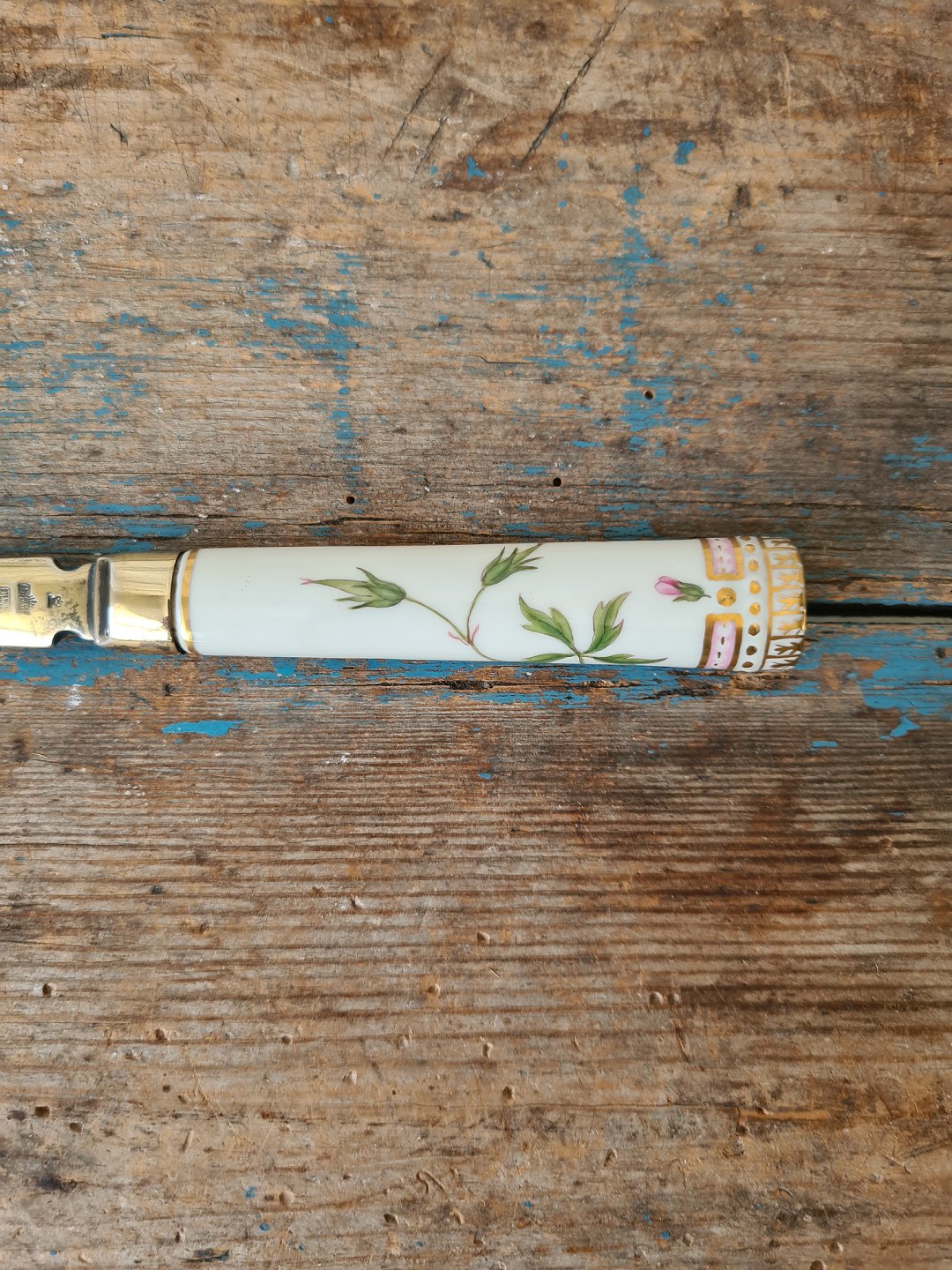 Royal Copenhagen - A.Michelsen Flora Danica brevkniv i forgyldt sølv og porcelæn