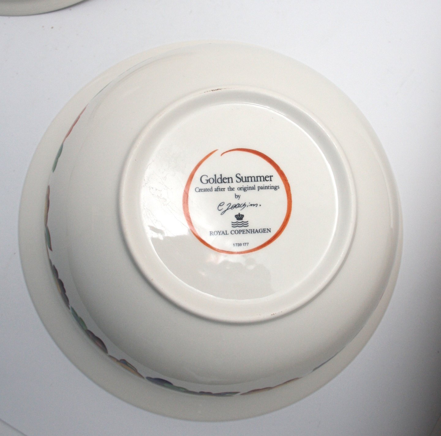 Royal Copenhagen, Golden Summer designet af Chr. Joachim. Kartoffel, suppeterrin eller stor terrin med låg. Nr. 1739/177. Højde 16,5 cm. Diameter 25 cm. I. sortering. Flot stand. Pris: 950 kr. stk. Lager: 1