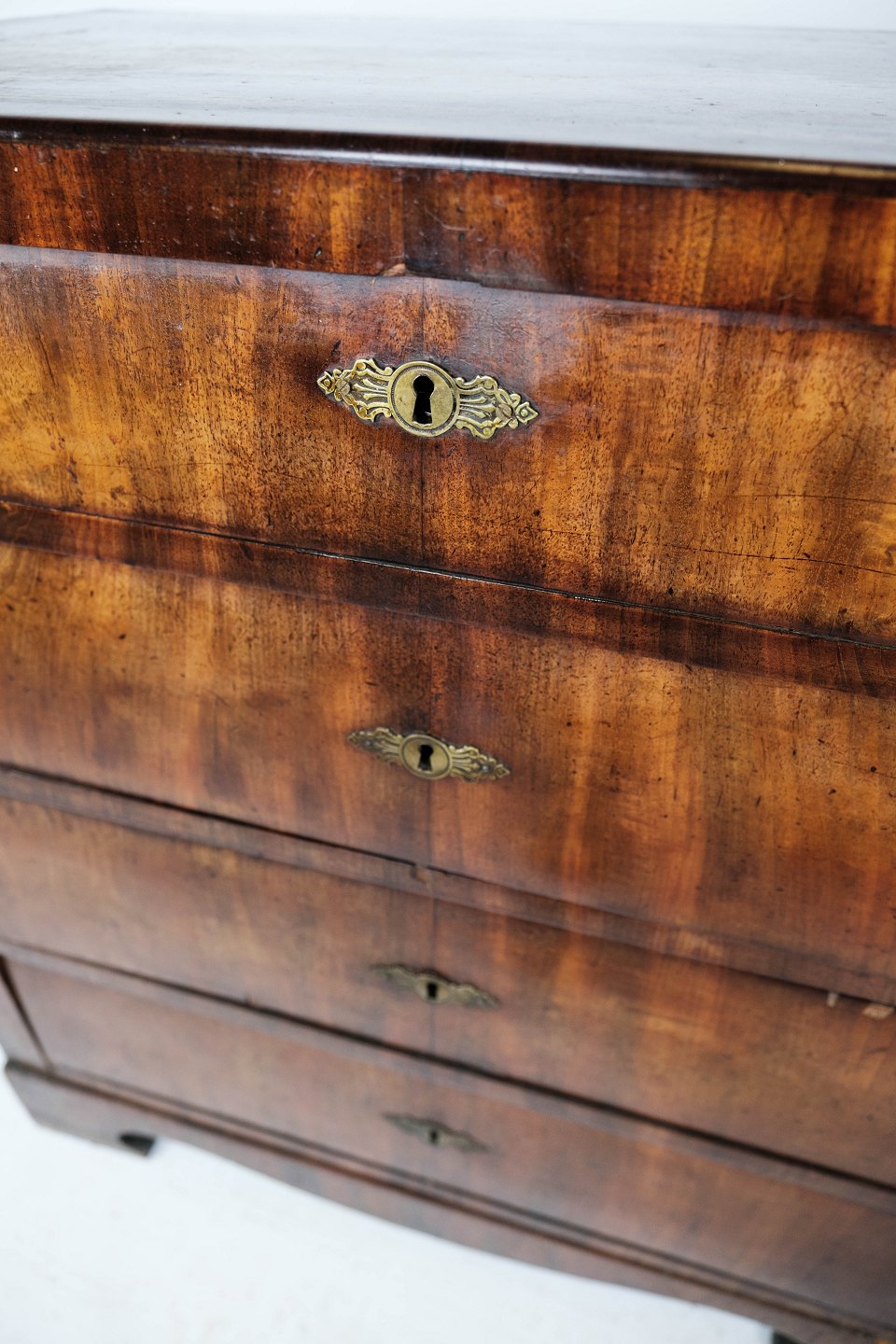 Sen Empire kommode med fire skuffer af mahogni, i flot antik stand fra 1840erne.
