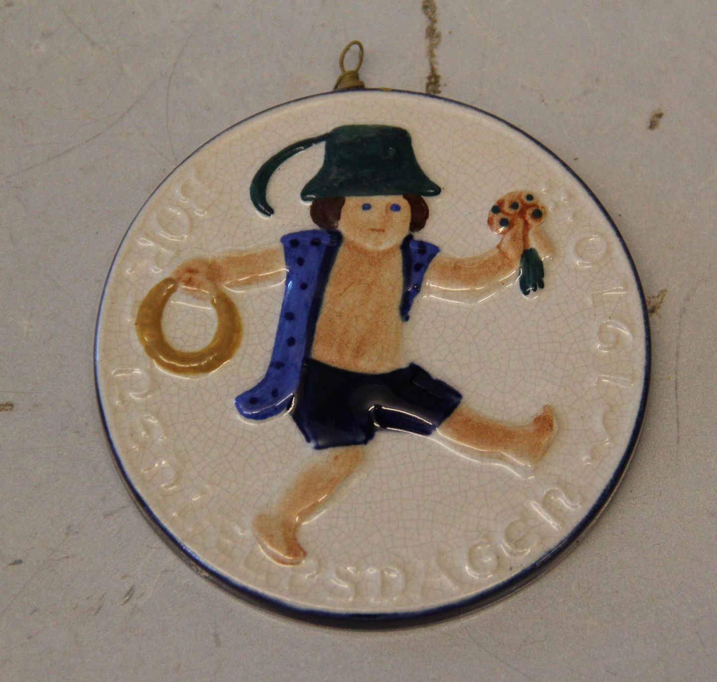 1910 Children's days plate Boy with flowers 1910 by Rasmus Harboe 753-659 8.7 cm Cracckled glaze