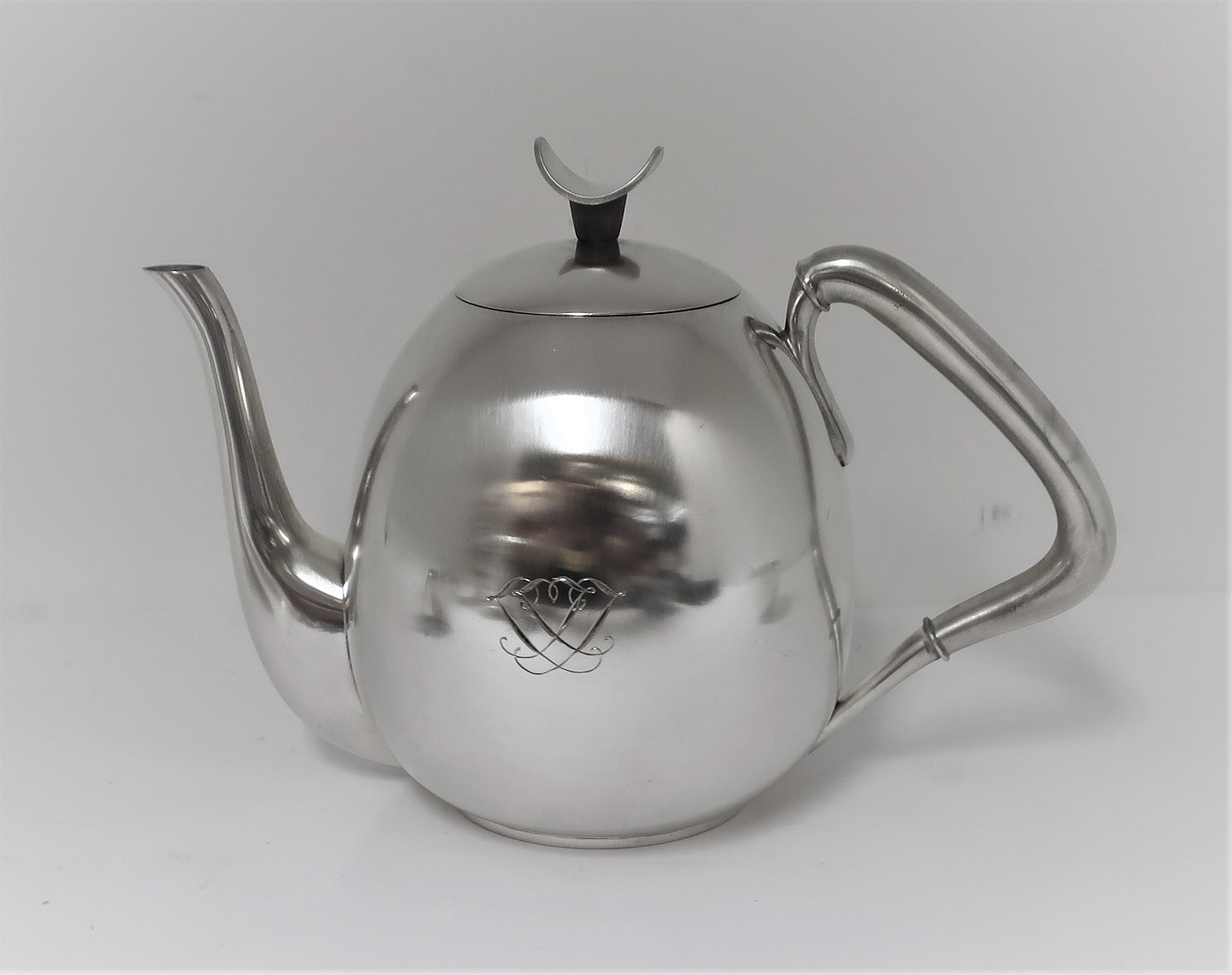 Dansk sølv teservice i sterling (925). Bestående af tekande, flødekande og sukkerskål. Højde på tekande 11,5 cm. Indgraveret JJ i spejl monogram.