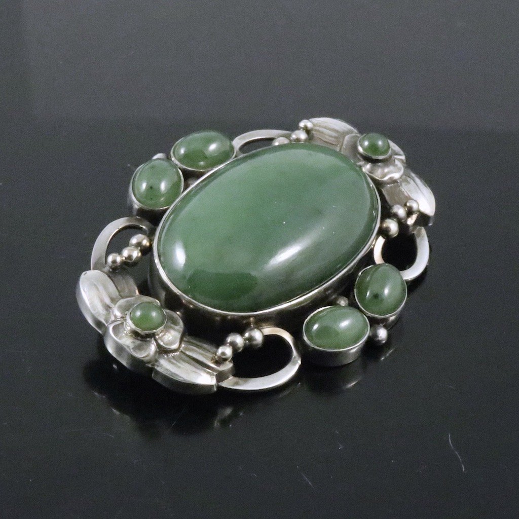 Georg Jensen. Broche i sterlingsølv med Nephrite #78B.