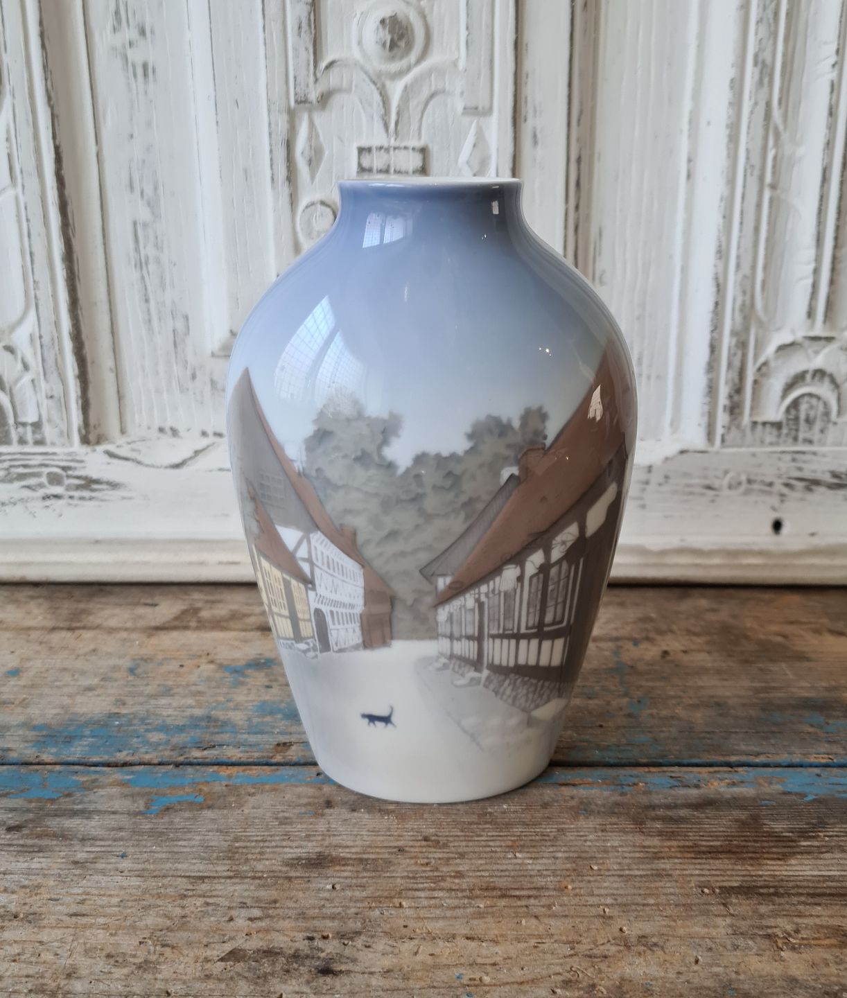 B&G vase dekoreret med bindingsværks huse no. 1302/6238