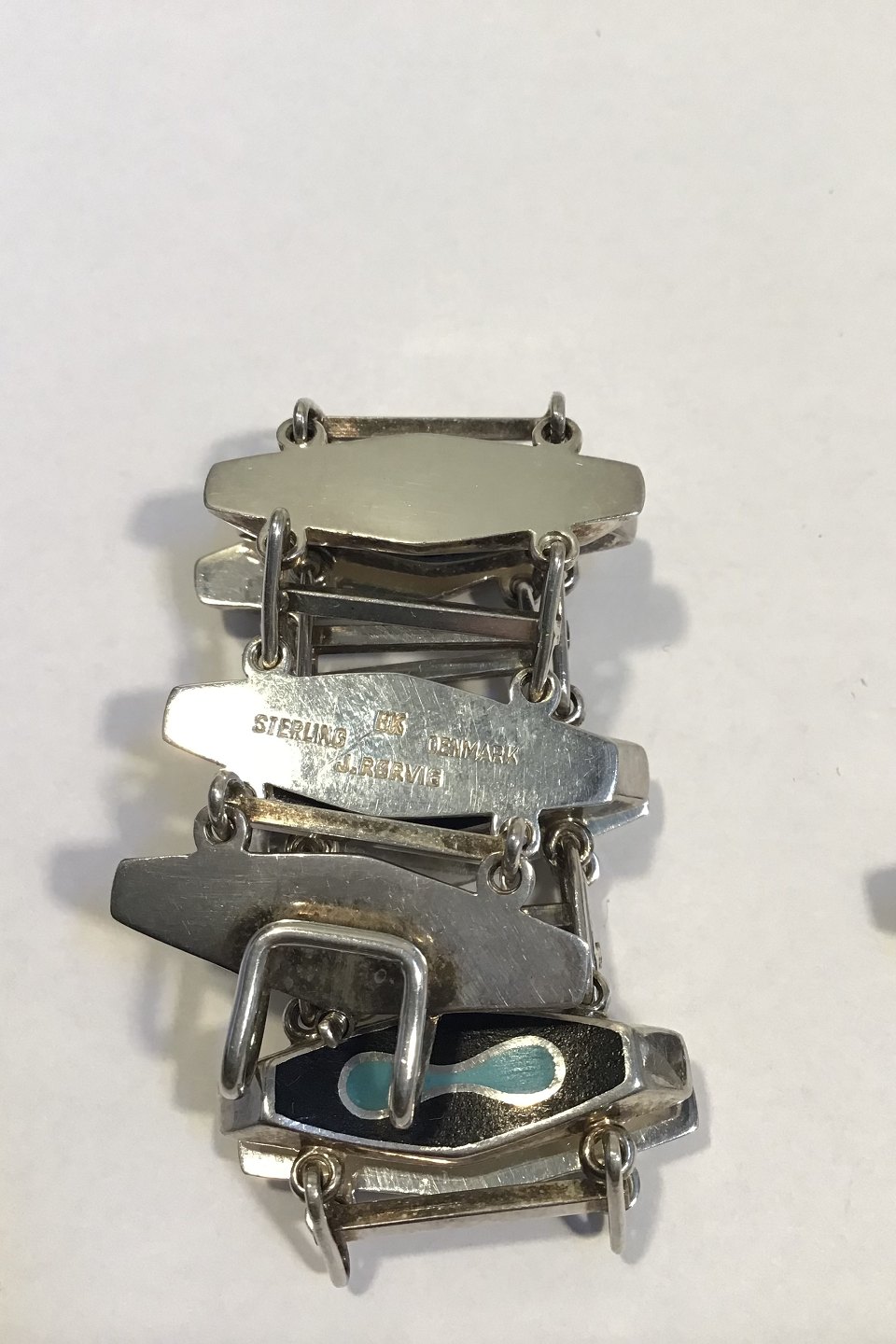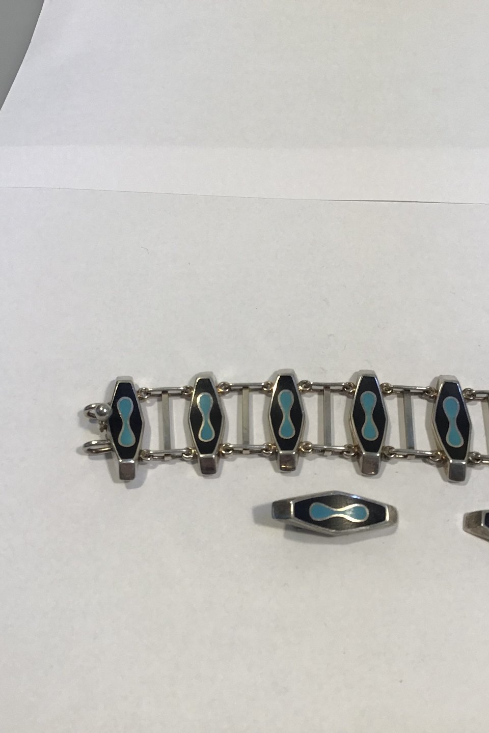 John Rørvig Sterling Sølv Emalje Armbånd og Øreklips