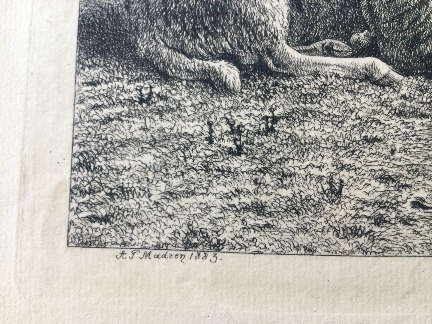 Radering af A.P. Madsen 1883 fra DDRF - Får på marken.