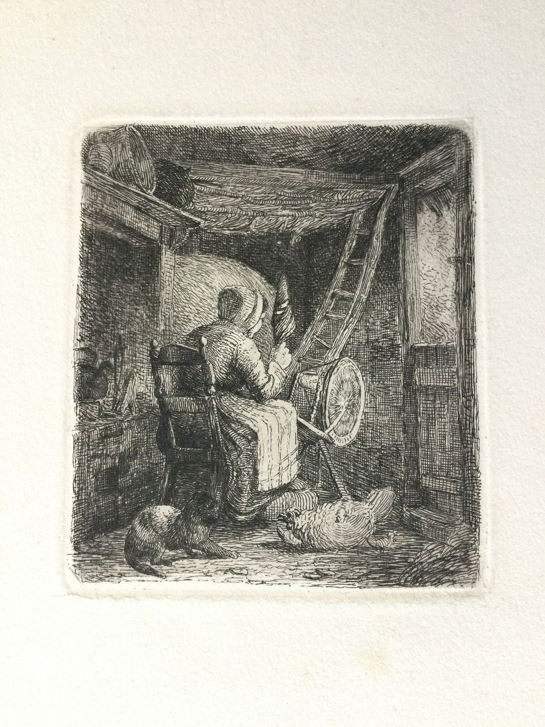 Radering fra DDRF af Johannes Vilhelm Zillen 1850'erne - En bondekone i sit køkken.