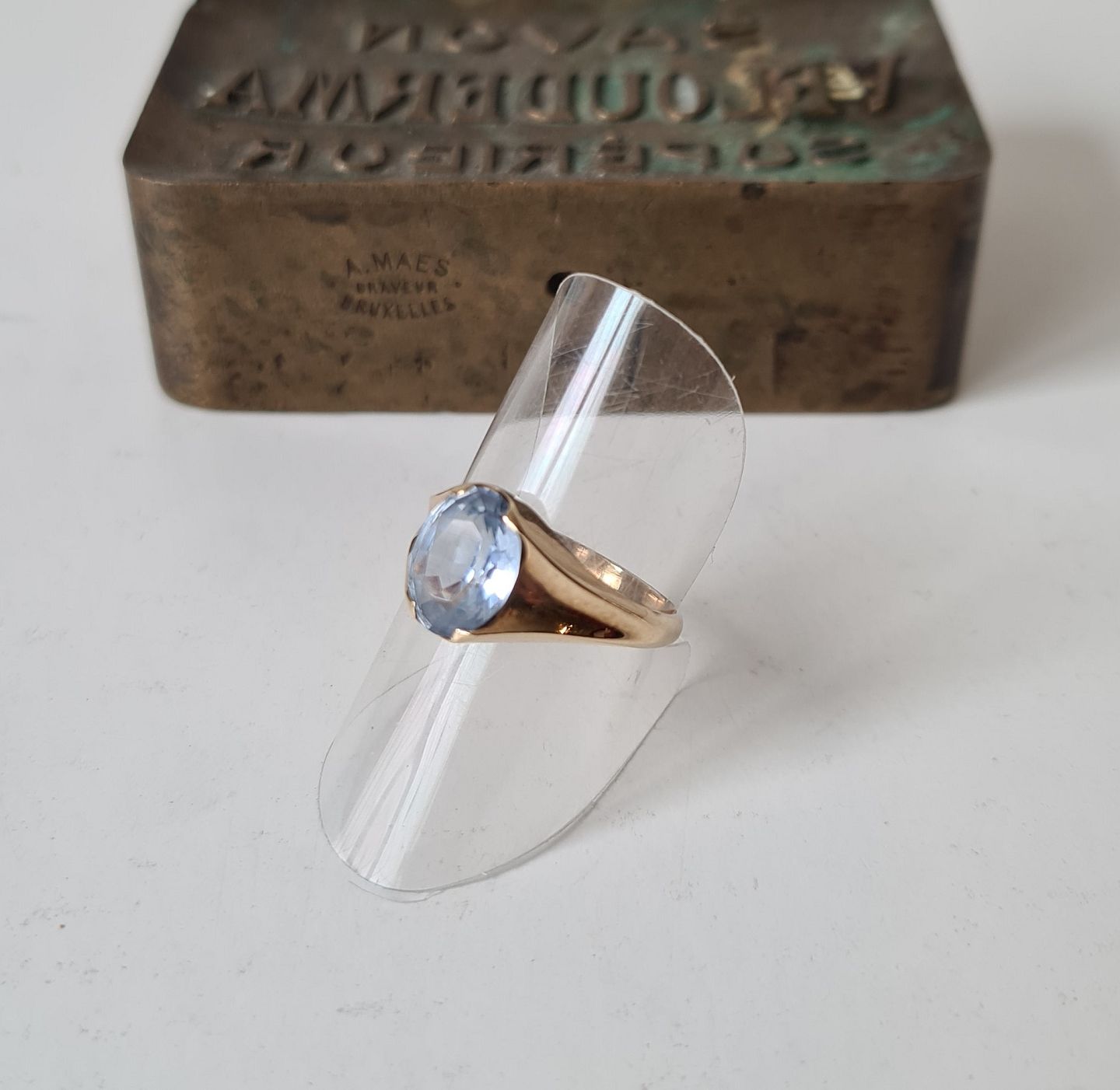 Hermann Siersbøl vintage ring i 14 kt guld med stor blå sten