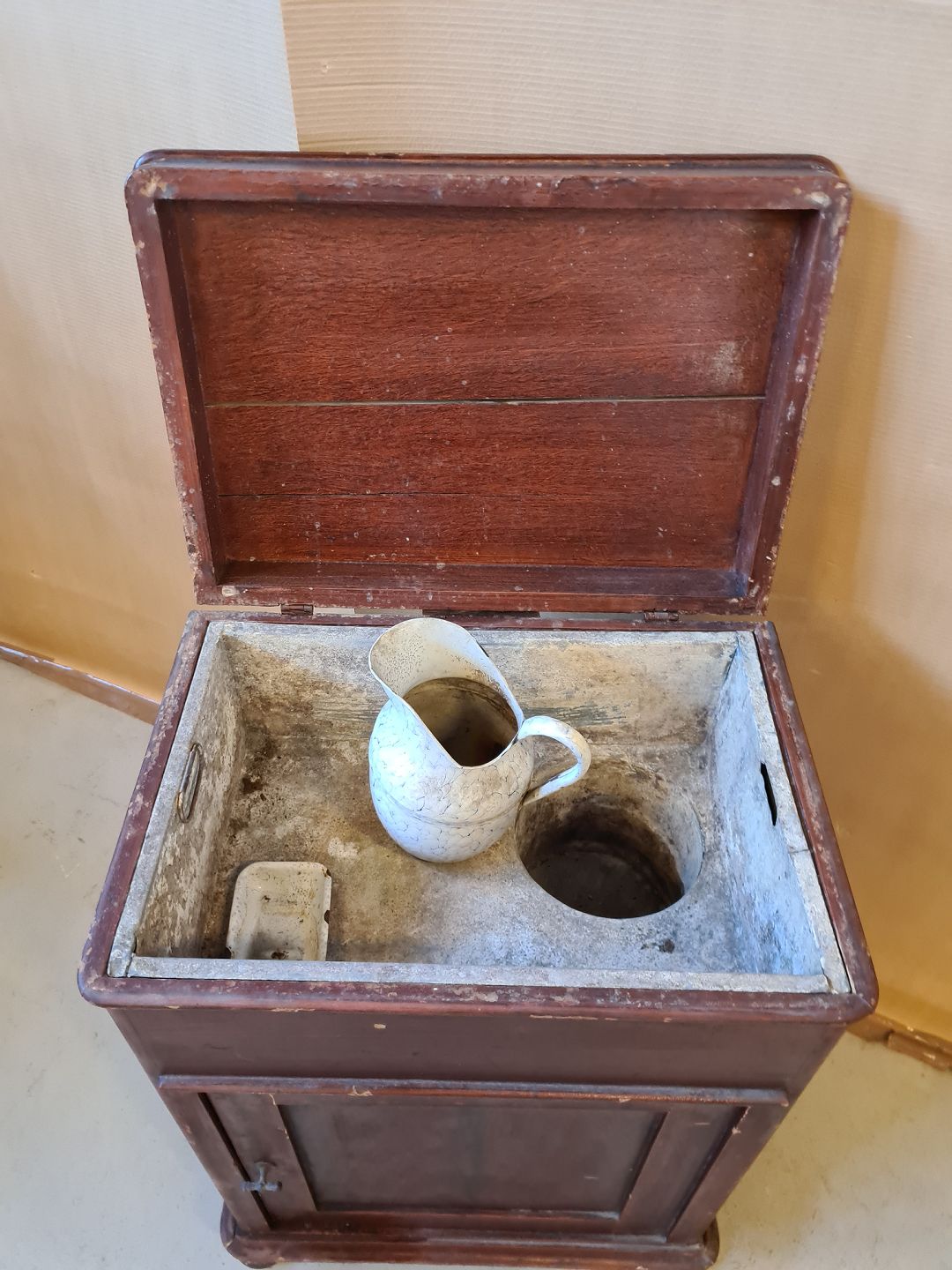 Servante i malet fyrretræ med zink indlæg og kande fra 1910erne.