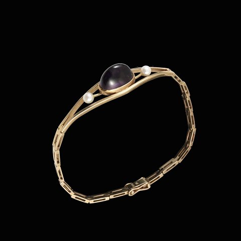 Armbånd i 14k guld med ametyst og perler.
