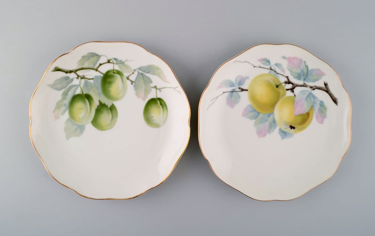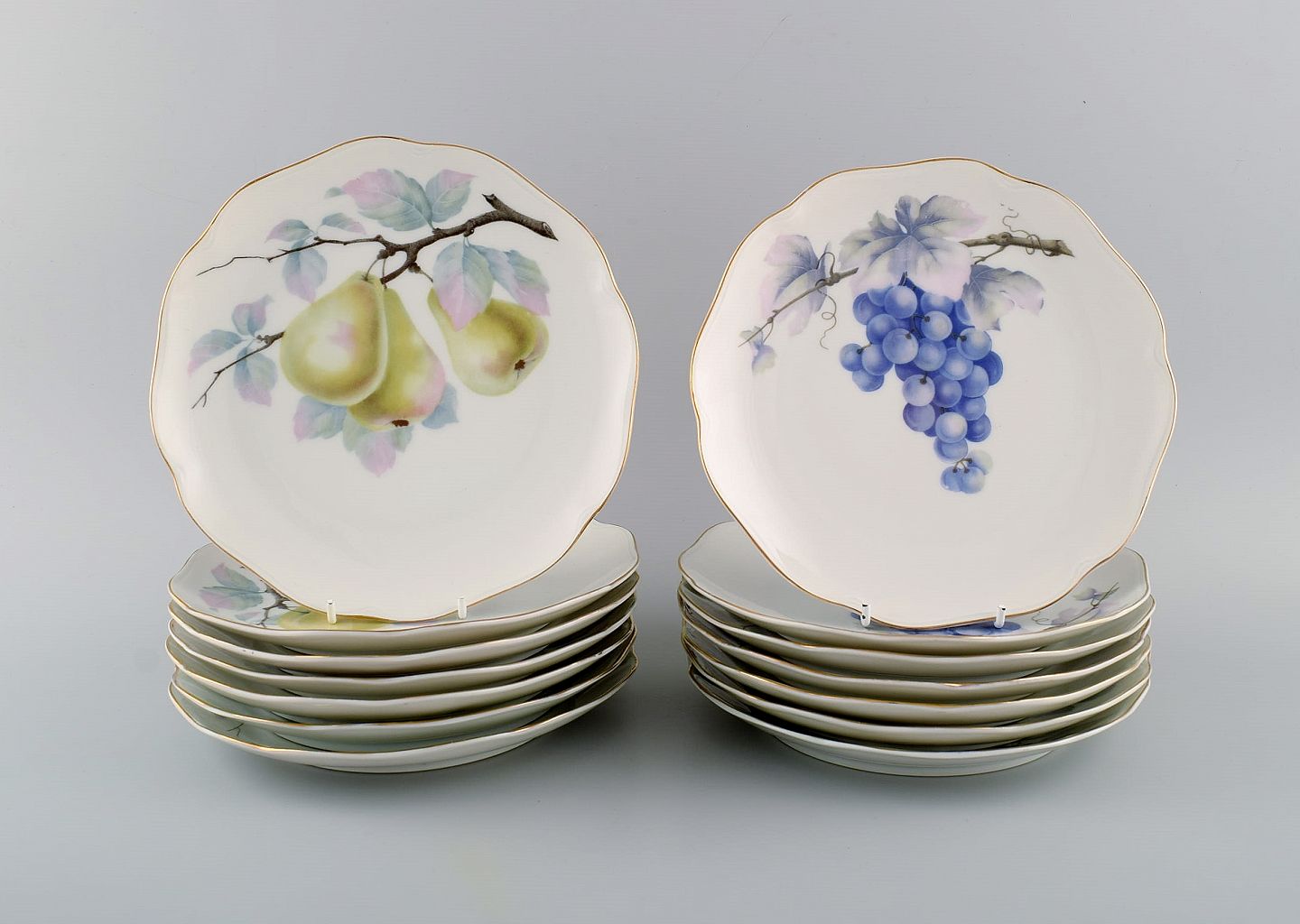 Kronach, Tyskland. 14 porcelænstallerkener med håndmlaede frugter. 1940'erne.